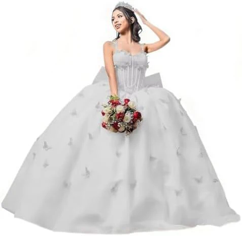 2025new evening dress one-word shoulder tube top adult dress princess dress three-dimensional butterfly dress