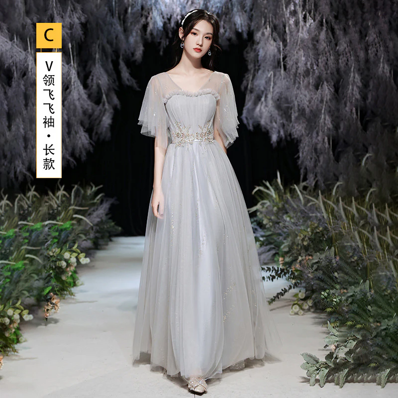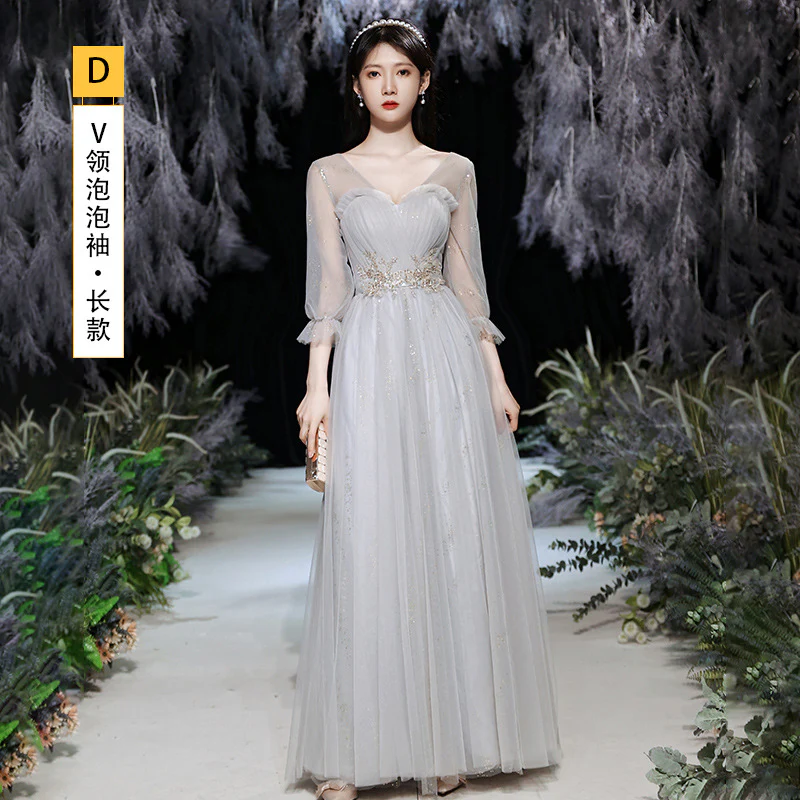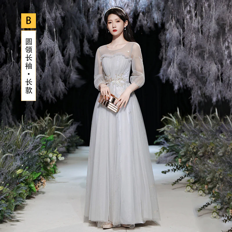 2025 Grey sister group bridesmaid clothes long and thin new host evening dress women can usually wear bridesmaid clothes