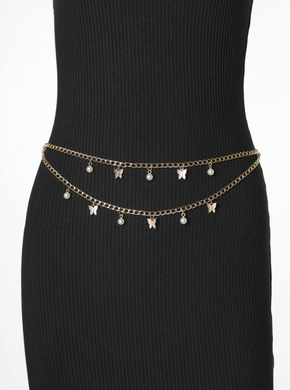 2025 3217 hot-selling waistchain alloy small butterfly pearl grain pendant exquisite fashion waist chain waist jewelry body chain