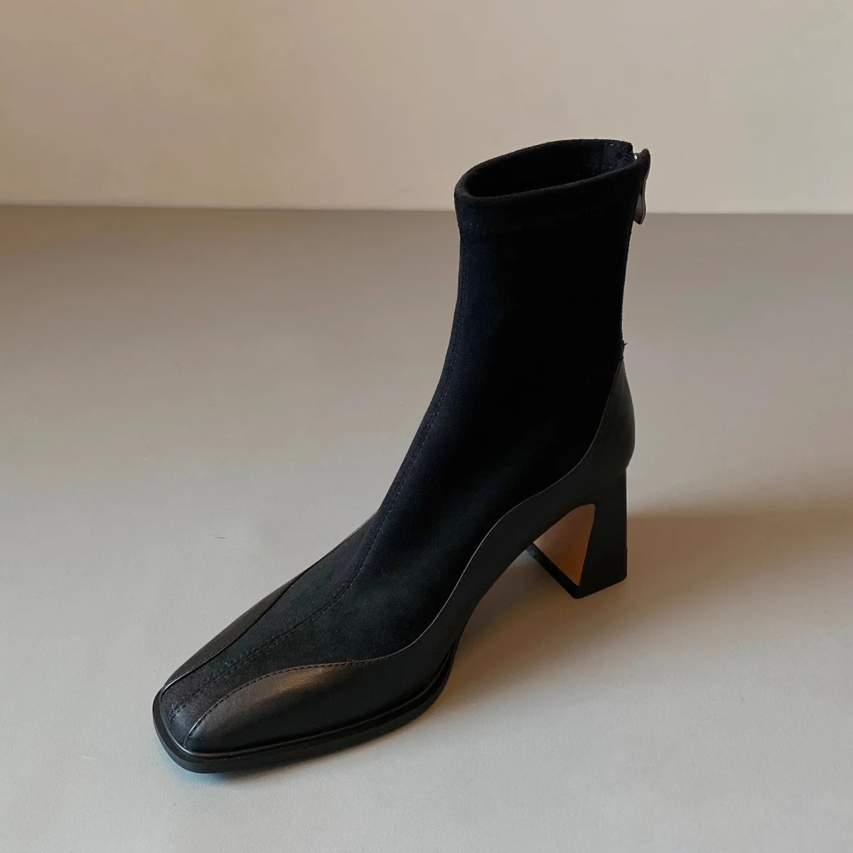 2025 Elastic thin boots women's thick heel pointed Martin boots women's popular new thin soft leather boots sleeve boots