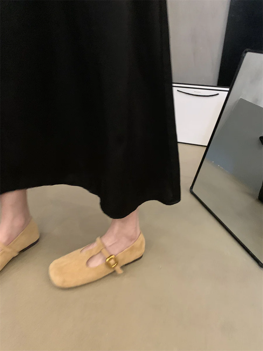 2025 niche metal buckle wool shoes women's autumn and winter outer wear velvet warm soft sole Velcro casual single shoes