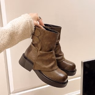 2025 short boots women's autumn and winter round head thick heel versatile women's high heel high temperament Martin boots women