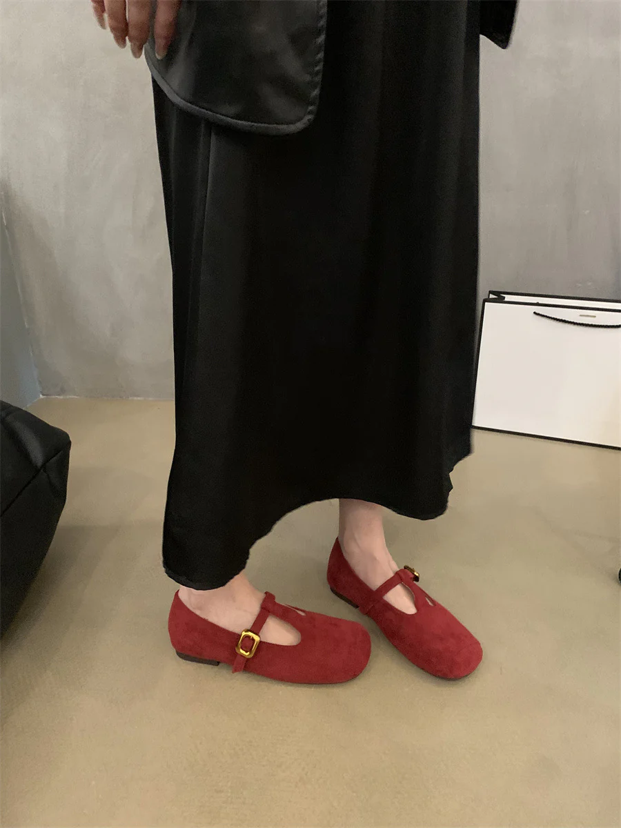 2025 Vintage Mary Jane Shoes Women's Flat popular Fall Andra Red Square Head T with Soft Soled Beanie Ladyshoes Granny Shoes