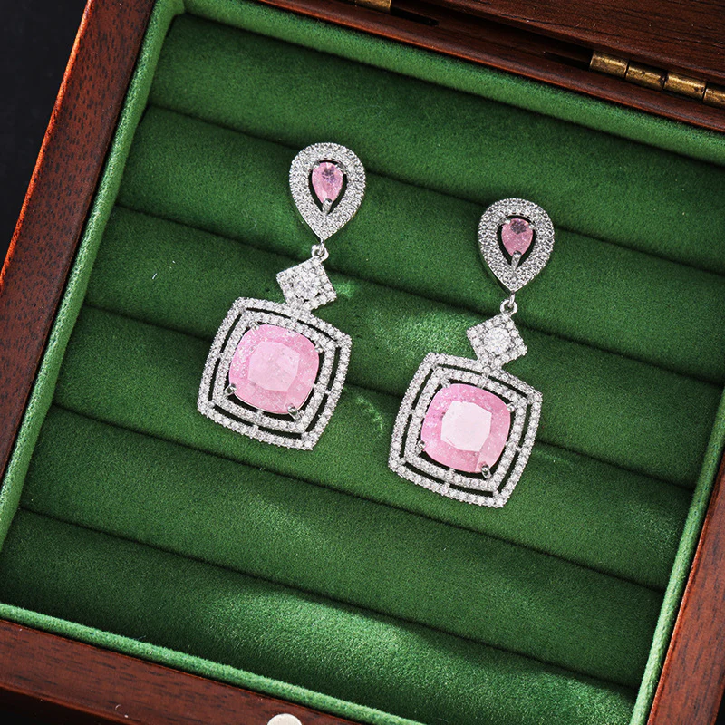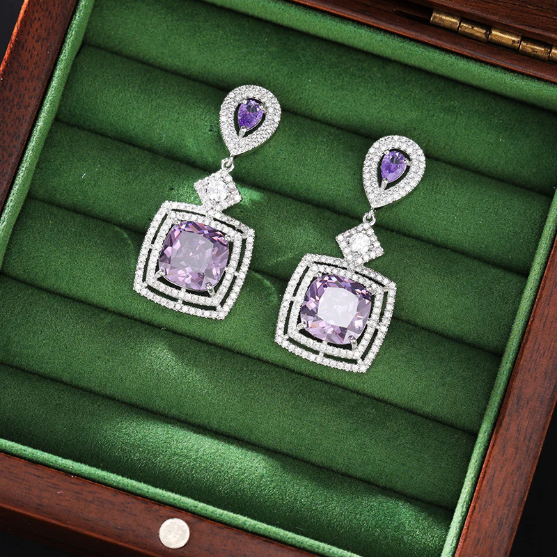 2025 Cross-border geometric square earrings, copper inlaid zircon colored treasure long earrings, new 925 silver needle earrings wholesale