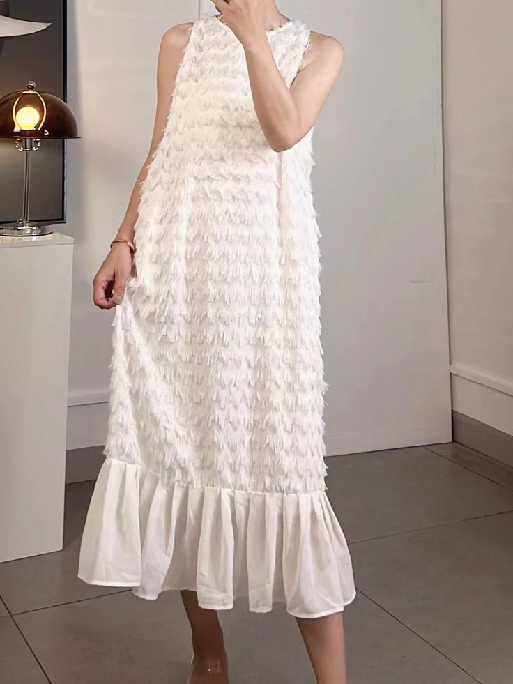2025 (Spot) Summer Premium Fishtail Dress Chiffon Feather Holiday Loose Sleeveless Vest Skirt