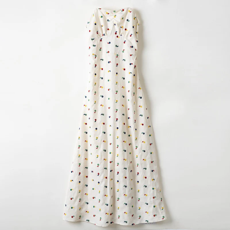 2025 Spot star with the same embroidery floral vacation skirt one-word shoulder tube top dress