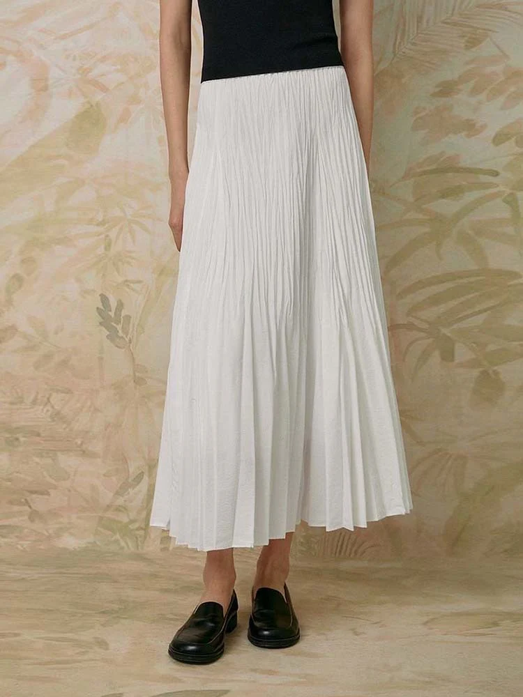 Siyuan, irregular hand-pleated moonlight A-shaped umbrella skirt 25 new high-waisted and thin medium and long skirt 9054