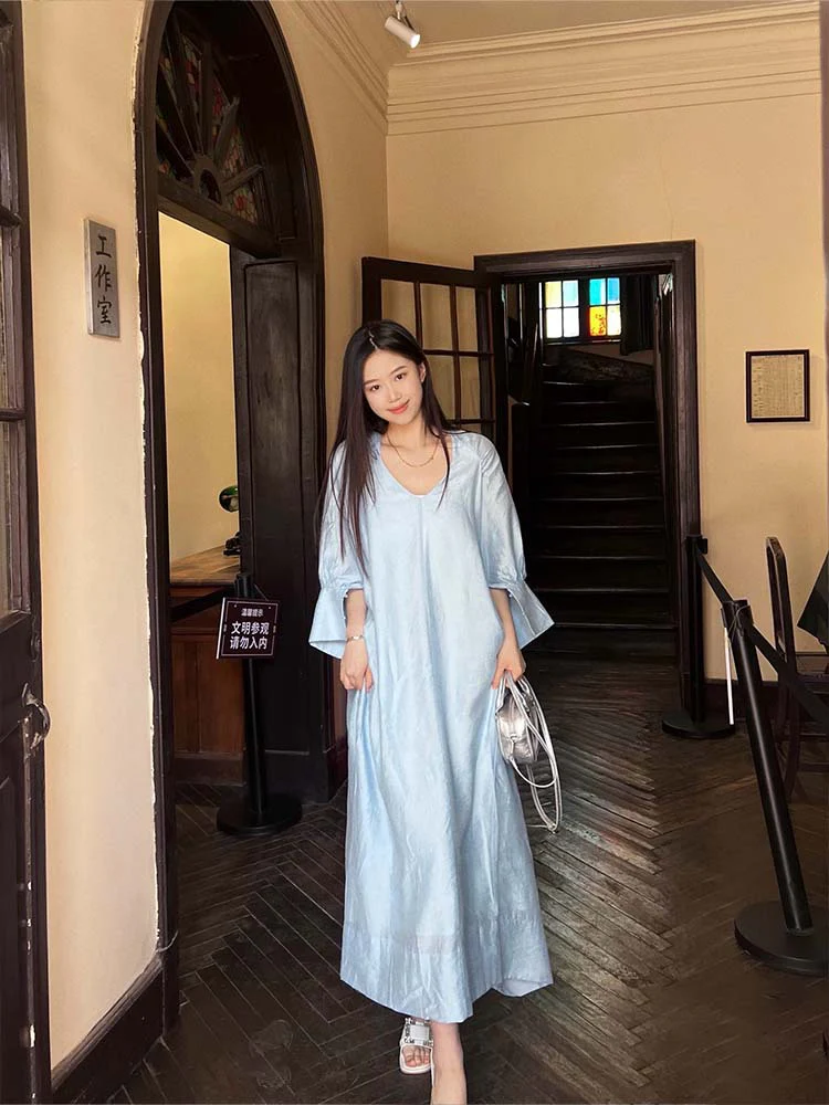 Siyuan, high-end lazy casual robe, fashionable V-neck seven-quarter-sleeved Tencel jacquard dress 7758