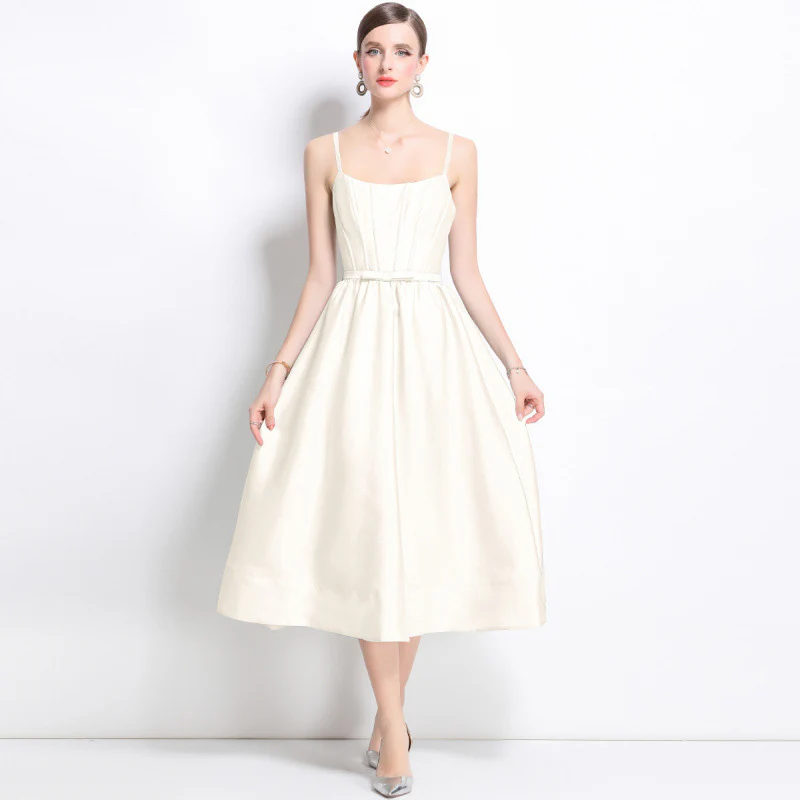 Bow pink suspender dress women's summer vest a-word skirt slim dress long skirt waist skirt