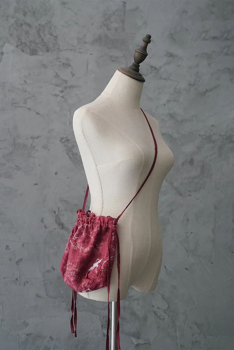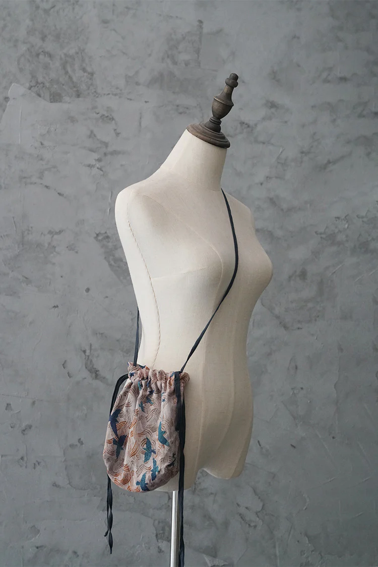 retro literary ramie printing drawstring small bag messenger bag ps-15
