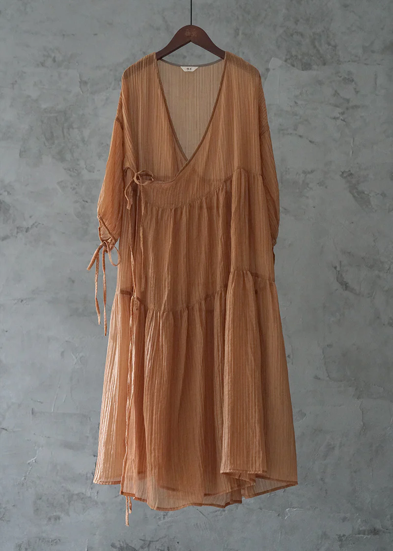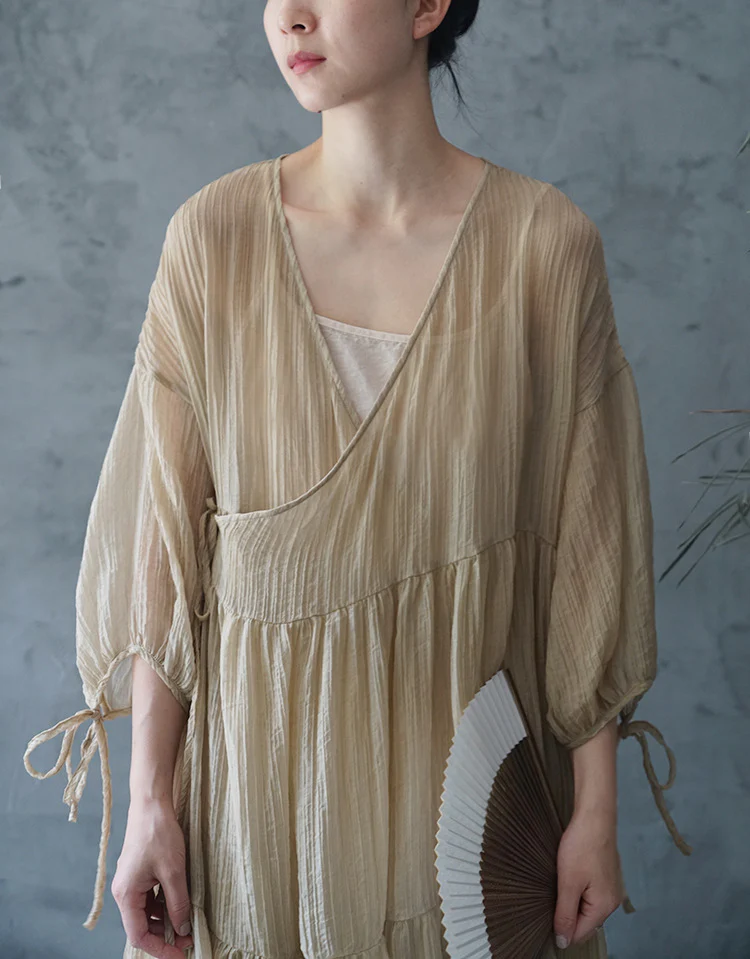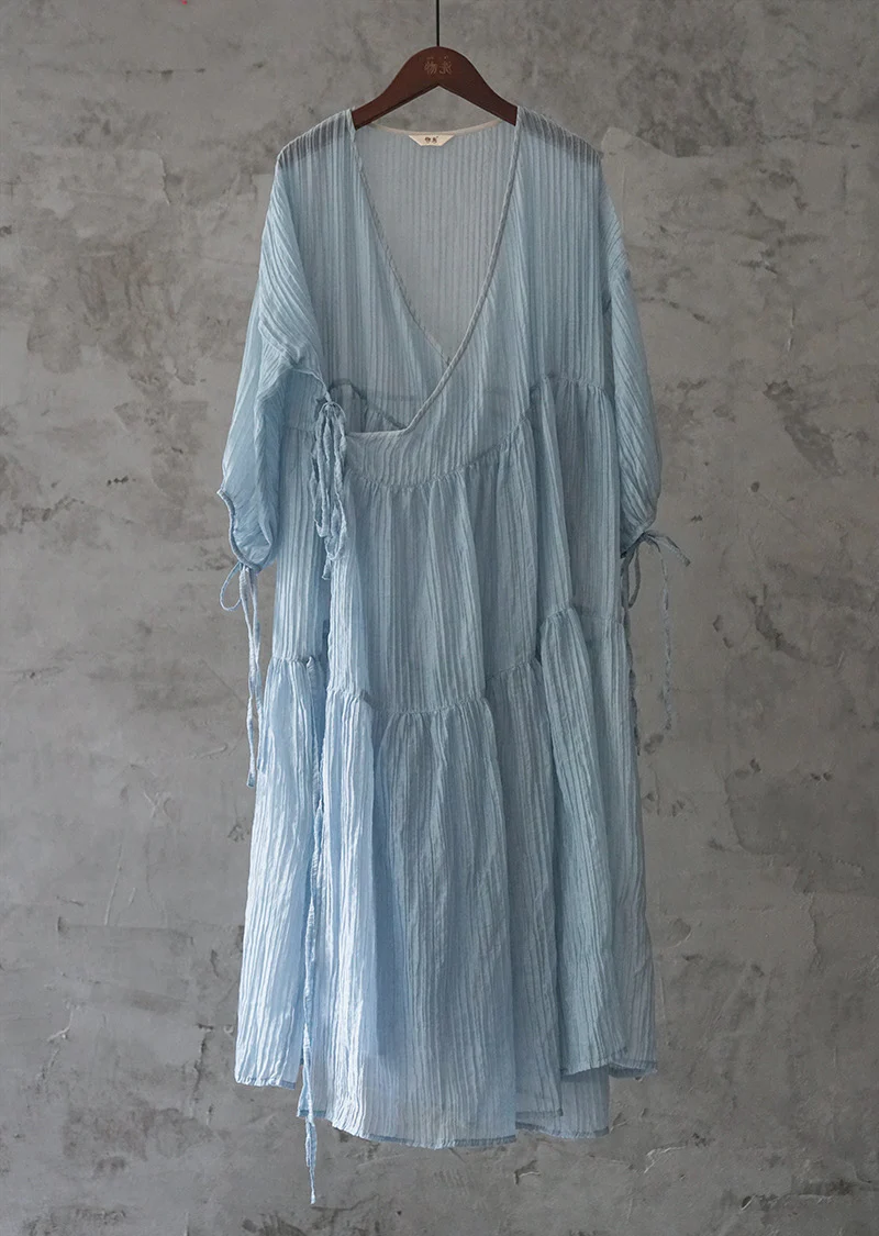 cool diagonal placket lace-up age-reducing dress, national style light Chinese Tencel crumpled long skirt L2115