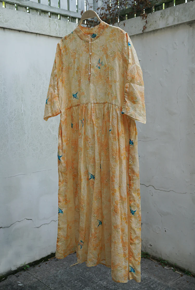 double-layer cotton butterfly print handmade buckle cheongsam improved Chinese dress L1842 elegant