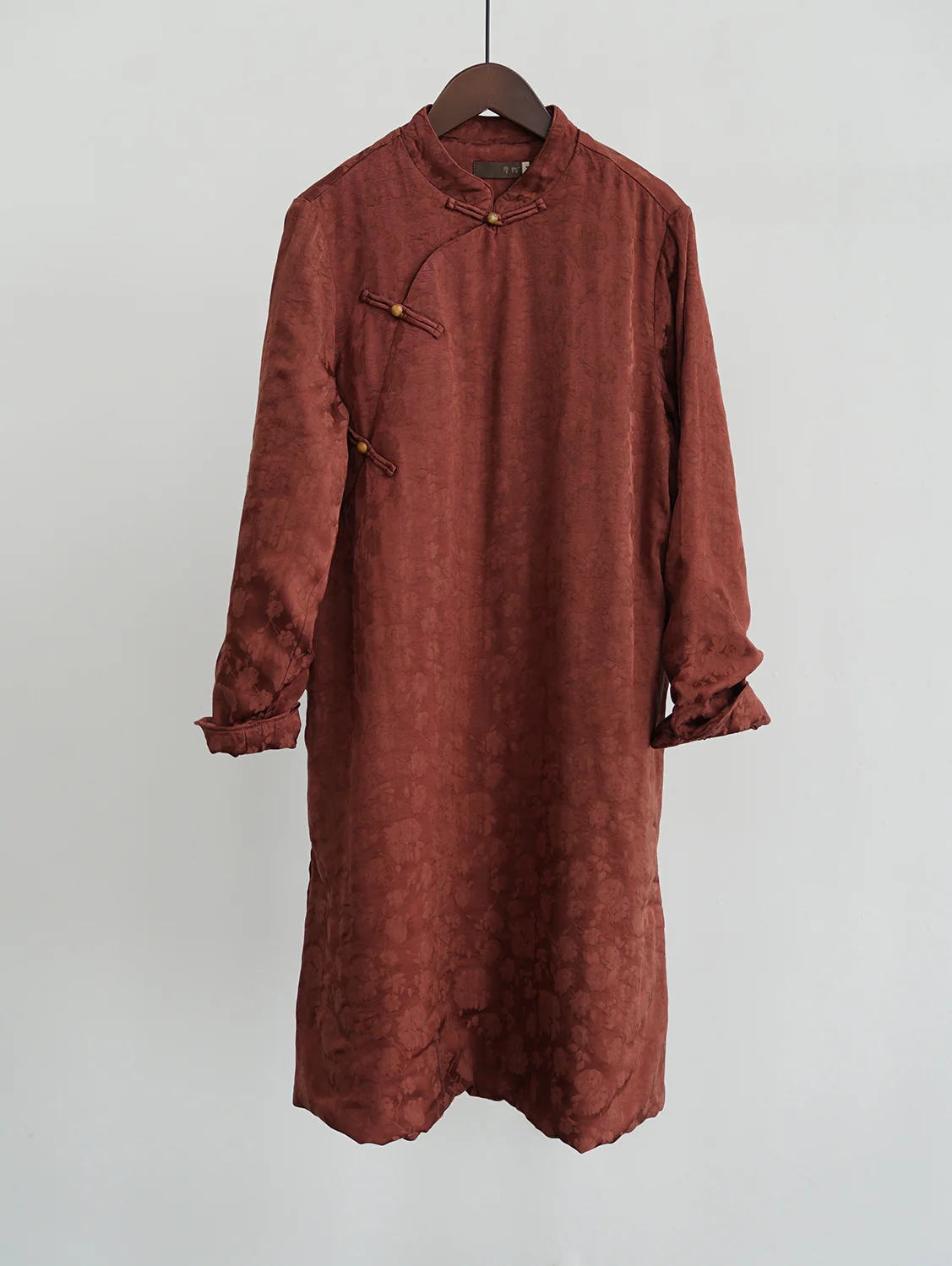 new Chinese retro silk jacquard cotton cheongsam, Oriental New Year warm robe dress L24302