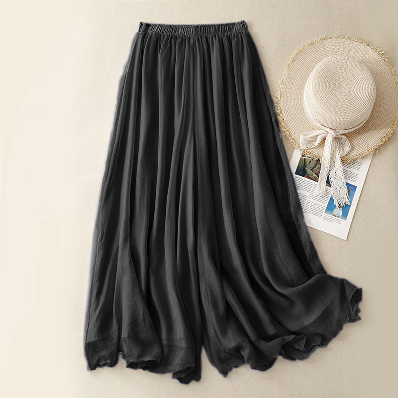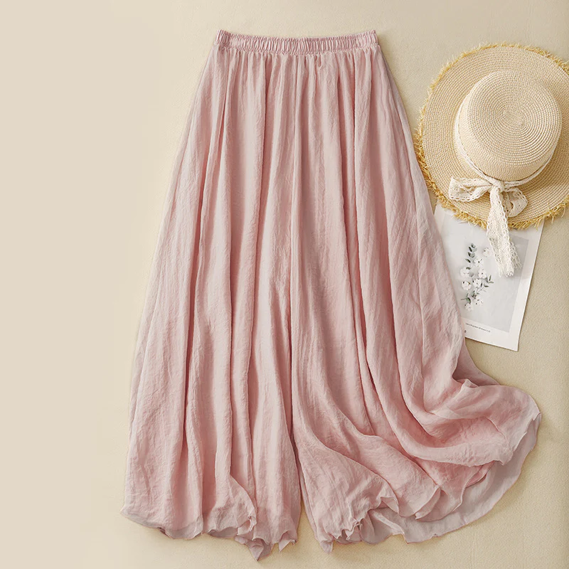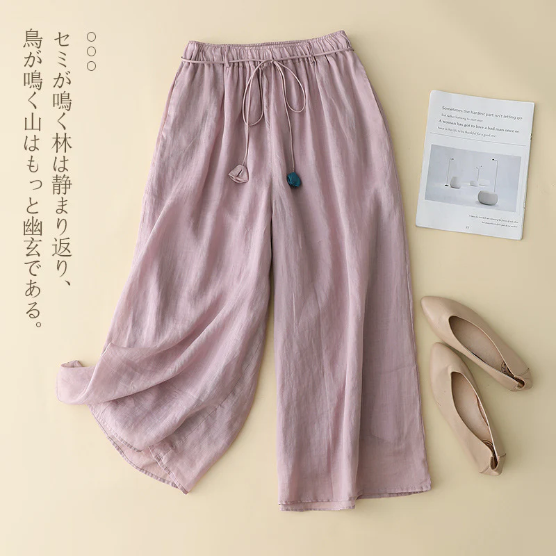3372 Comfortable lace-up versatile wide-leg pants, summer super fairy Tencel hemp pants skirt, loose and drape casual women's pants