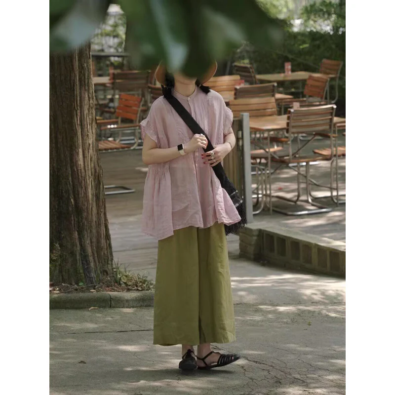 Summer Japanese niche literary and artistic lace-up age-reducing pants women's cotton and linen loose large size casual versatile wide-leg nine-point pants