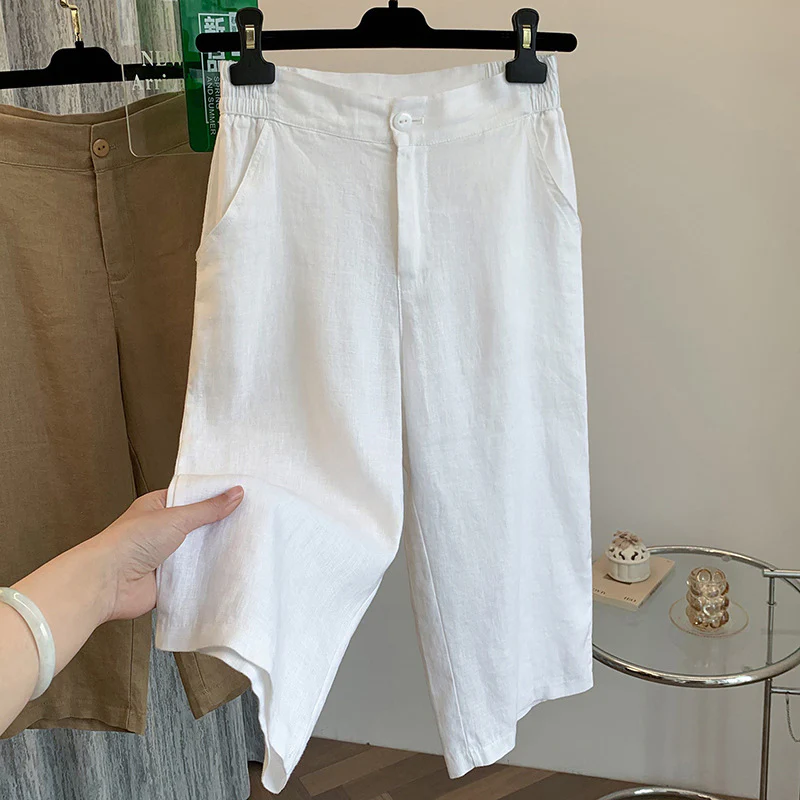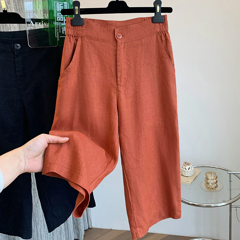 summer new cotton and linen cropped pants women's high-waisted straight-leg pants Korean version of thin and comfortable cotton and linen pants casual pants