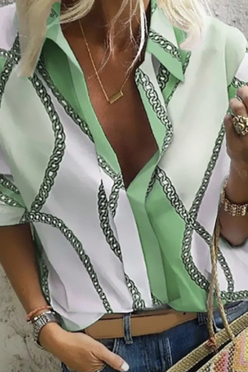 Fashion Print Patchwork Turndown Collar Blouses