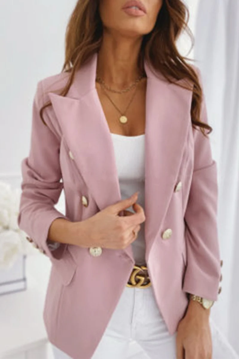 Elegant Solid Split Joint Buttons Turn-back Collar Outerwear(5 colors)