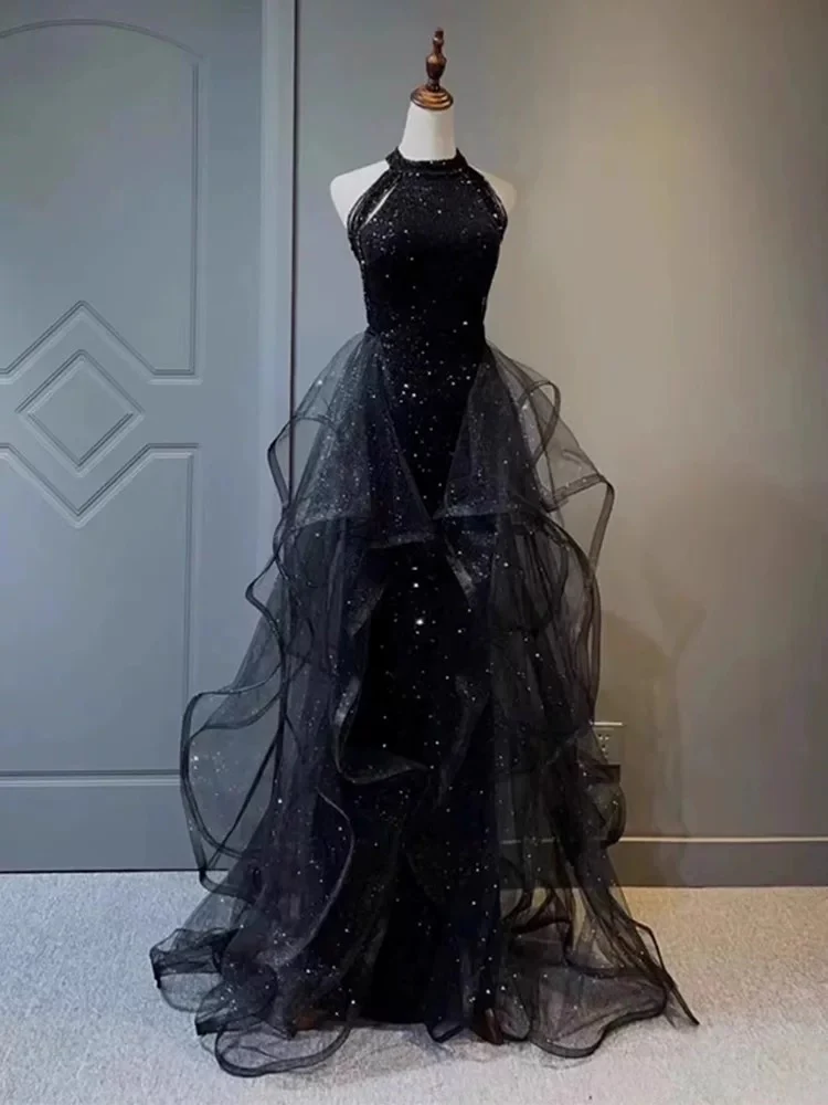 Pretty Navy Blue Sequins Long Prom Party Dress Prom Dress Evening Dresses DP309