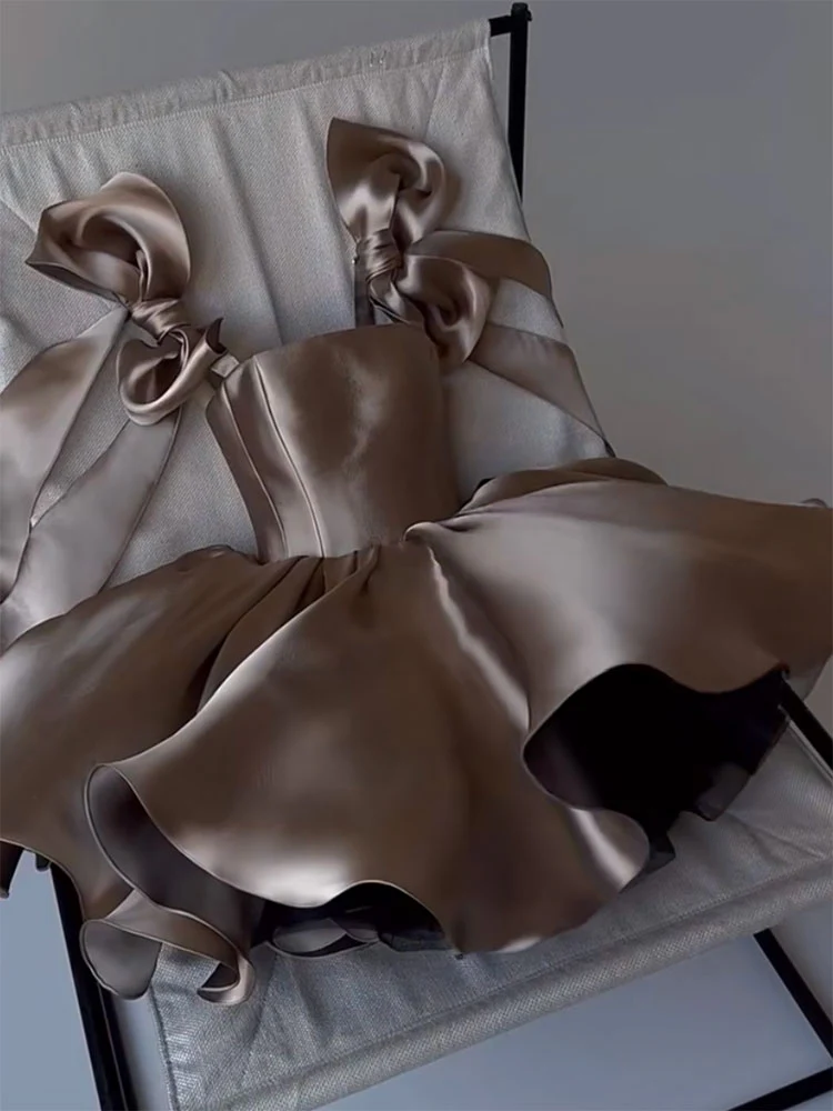 Cute A line Straps Summer Satin Homecoming Dress Hoco Dress Mini 20th Birthday Outfit Cocktail Dresses DP1779