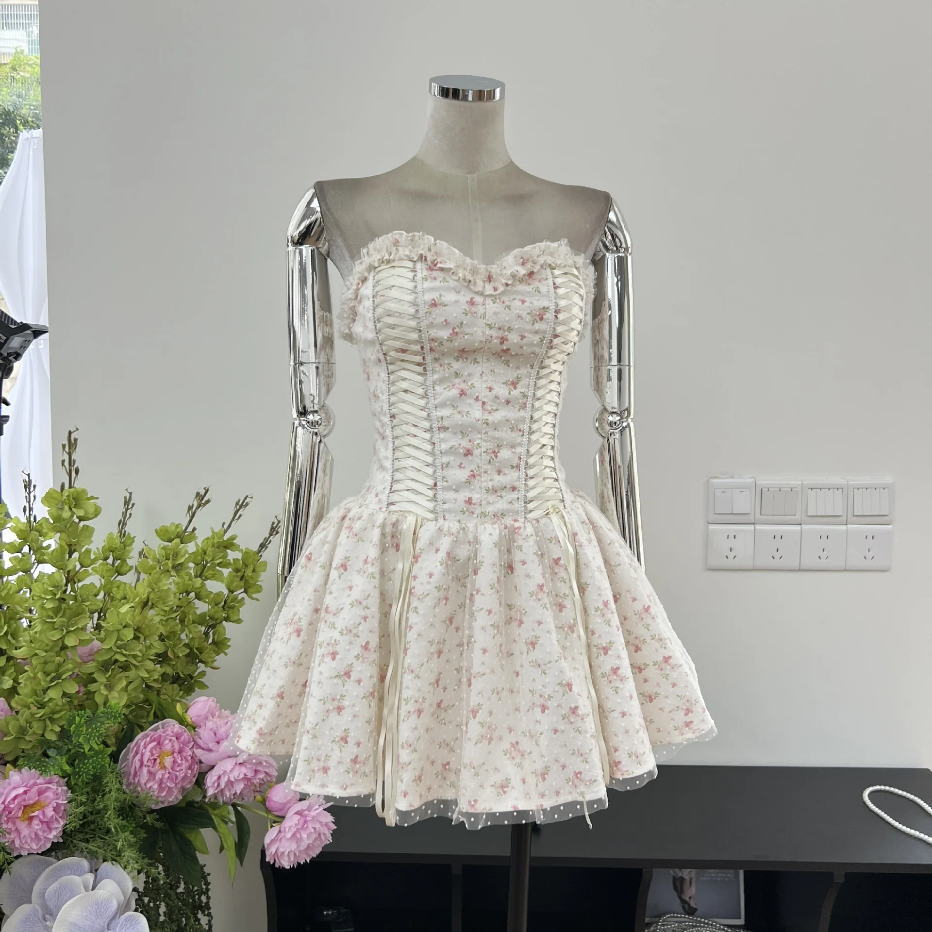 Pretty A line Strapless Black Polka Dots Formal Homecoming Dresses Short 16th Birthday Outfits Graduation Dress Mini Cocktail Dresses DH2457