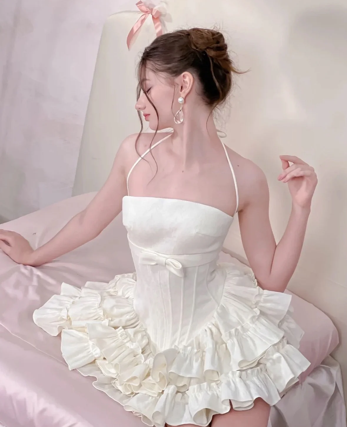 Pretty Ball Gown Halter White Formal Homecoming Dresses 21st Birthday Outfits Graduation Dress Short Mini Cocktail Dresses DH2465