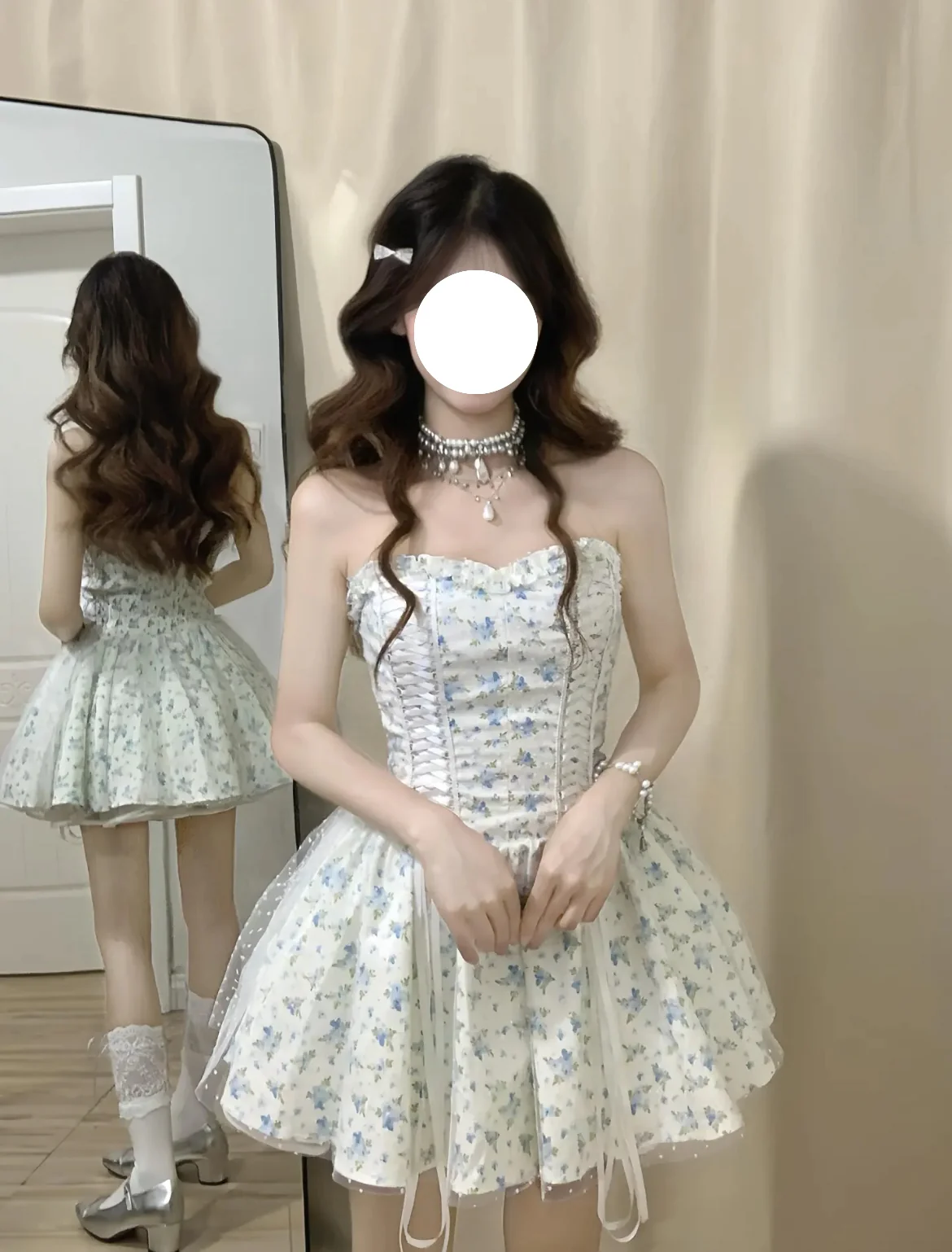 Modest A line Sweetheart Floral Blue Short Formal Homecoming Dress Middle School Short 18th Birthday Outfits Graduation Dress Cocktail Dresses DH2461