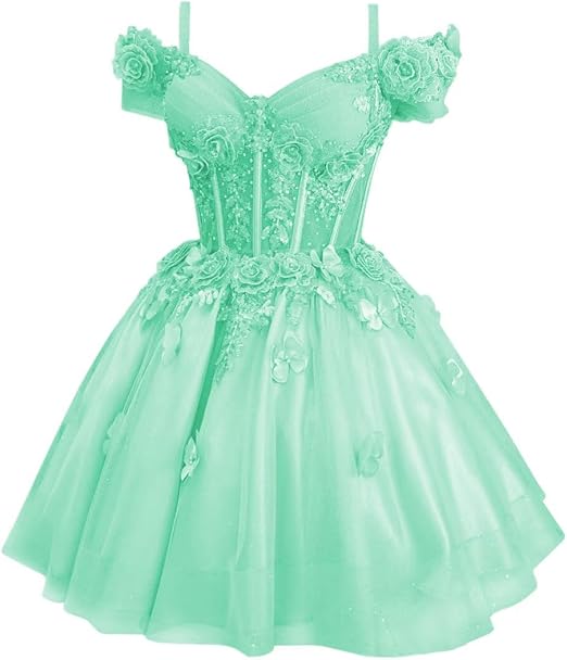 Modest Ball Gown Off The Shoulder Light Sky Blue Lace Formal Homecoming Dresses 8th Grad Dance Graduation Dress Short Hoco Dresses DH2598