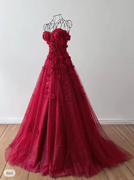 Sexy A-Line Prom Dresses Elegant Dress Formal Sweep/Brush Train Sleeveless Sweetheart Tulle with Pleats Sequin Appliques DP305