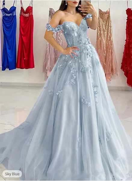 Fairy Off the Shoulder Light Blue Ruffles Prom Dress Party Gown Evening Dresses DP299