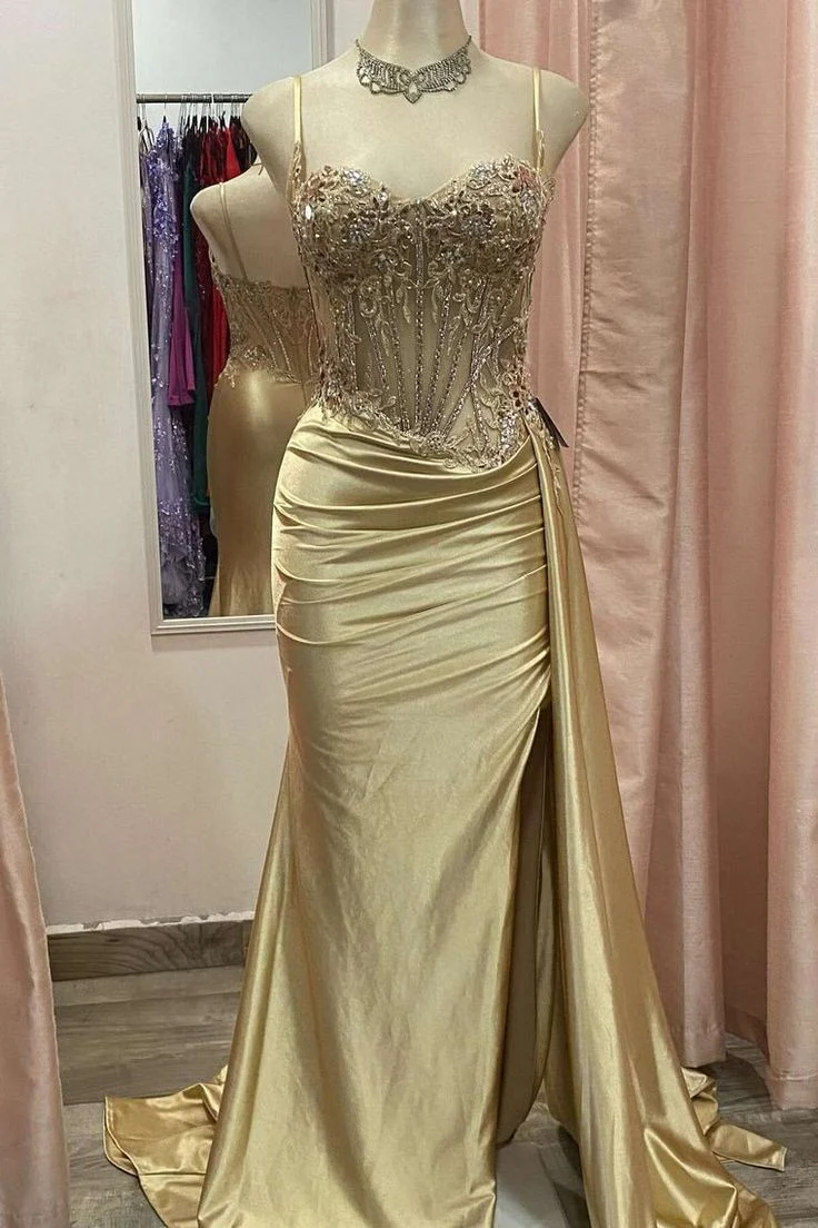 Sexy Silver Spaghetti Straps Mermaid Appliqued Prom Dress DP307
