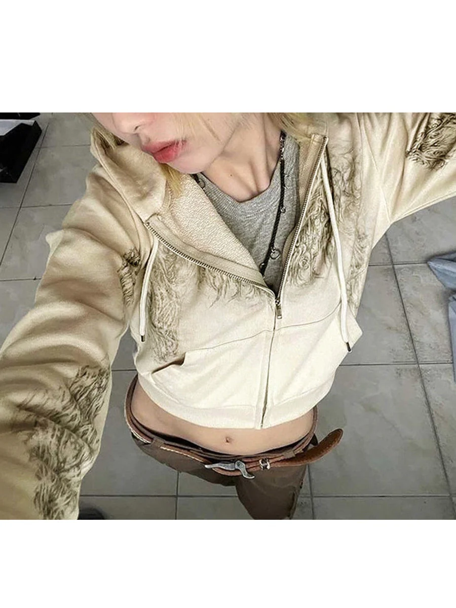 Black Friday Sales Vintage Grunge Harajuku Sweatshirt Graphic Print E-Girl Dark Academia Y2K Zip Up Cropped Hoodie Autumn Spring Coat Top