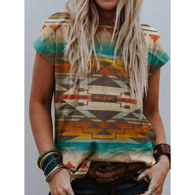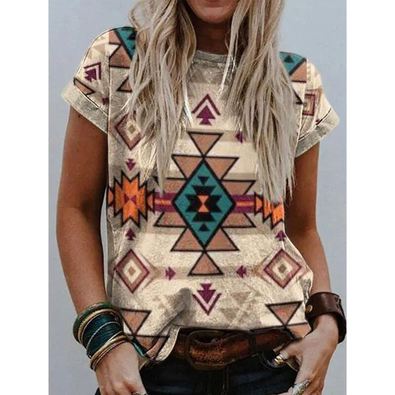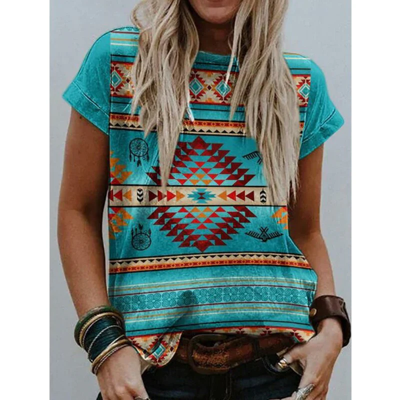 Christmas Gift Deanwangkt Summer Women New Urban Casual Round Neck Print Short Sleeve T-shirt Ladies Retro Plus Size Loose Shirt Tops