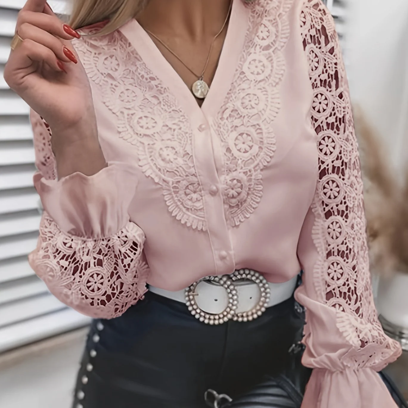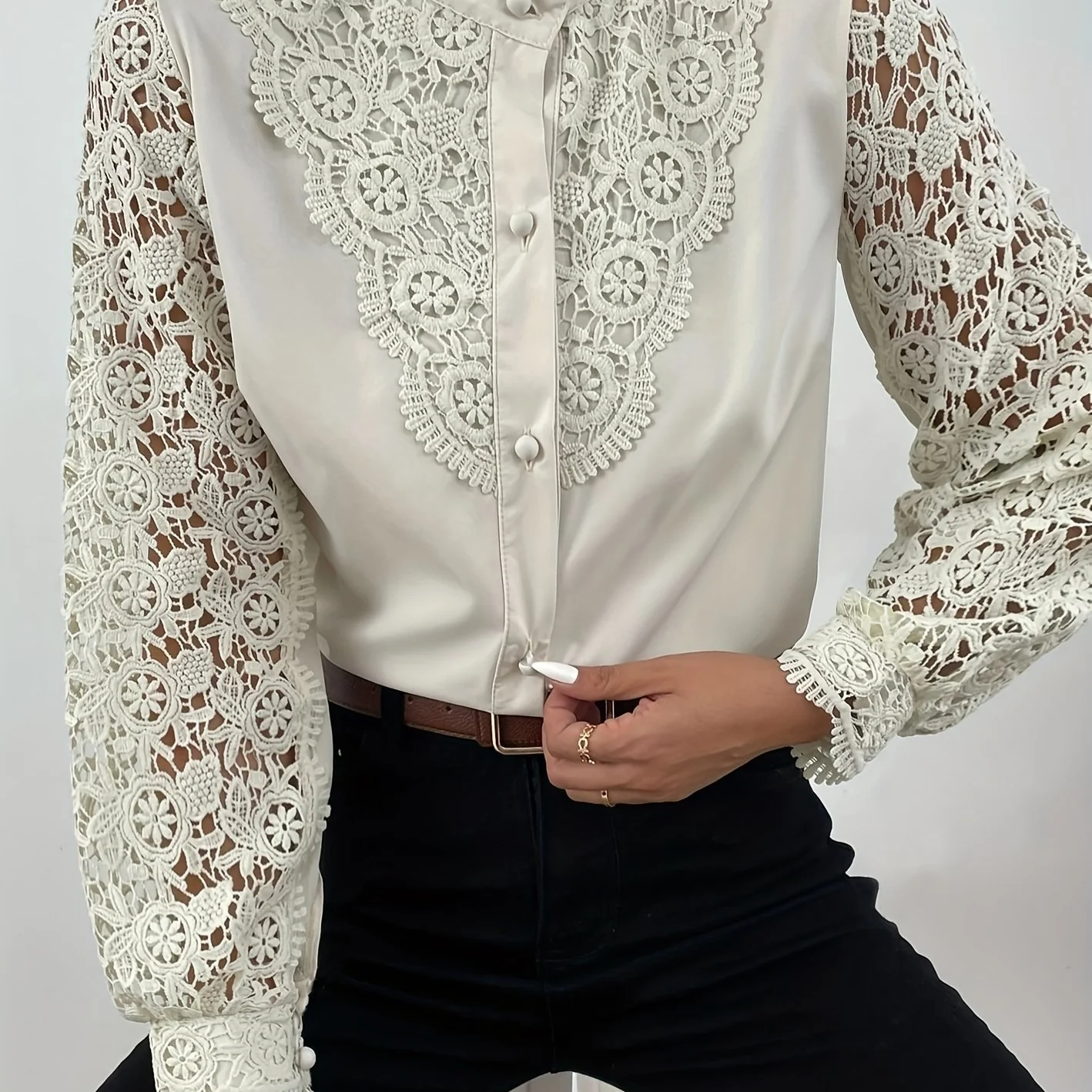 Women's Blouses Women Sexy Lace Patchwork Hollow Out Shirt Blouse Long Sleeve O-Neck Elegant Blouses
