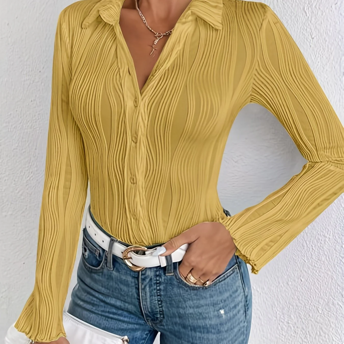Solid Lapel Slim Shirt, Elegant Long Sleeve Shirt For Spring & Fall, Women's Clothing