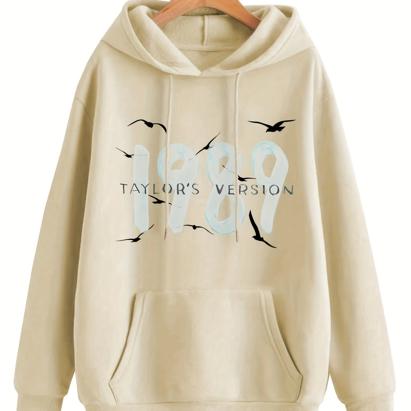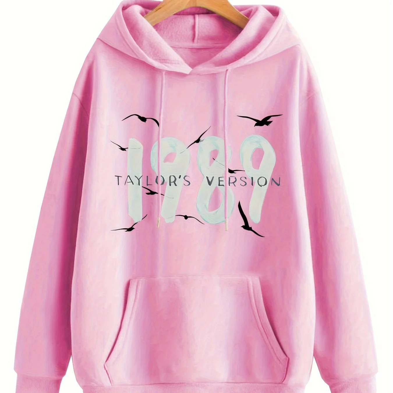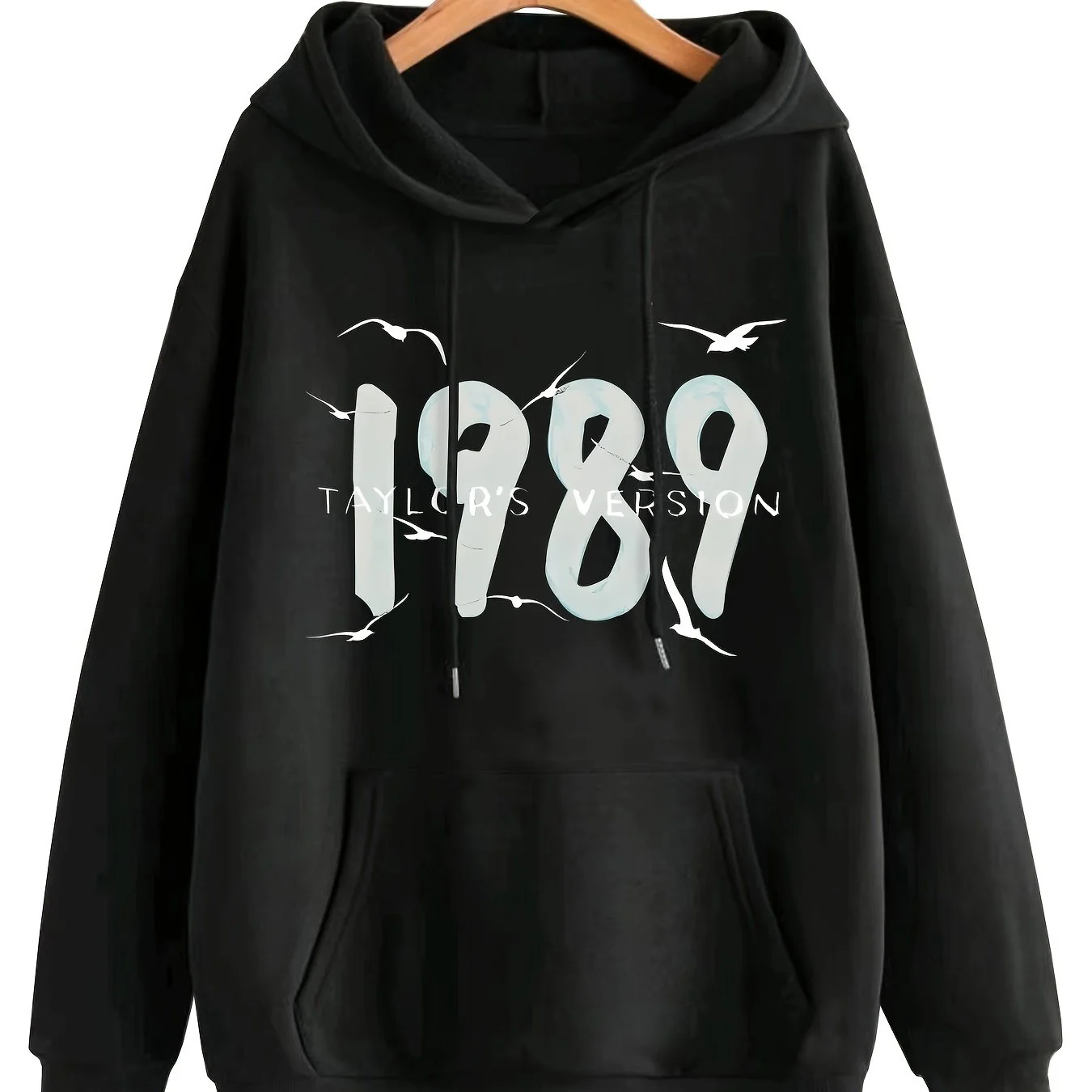 Number 1989 Graphic Fleece Lined Casual Sports Hoodie,Long Sleeve Drawstring Pullover Pocket Front Hooded Sweatshirt,Women's Sporty Sweatshirts
