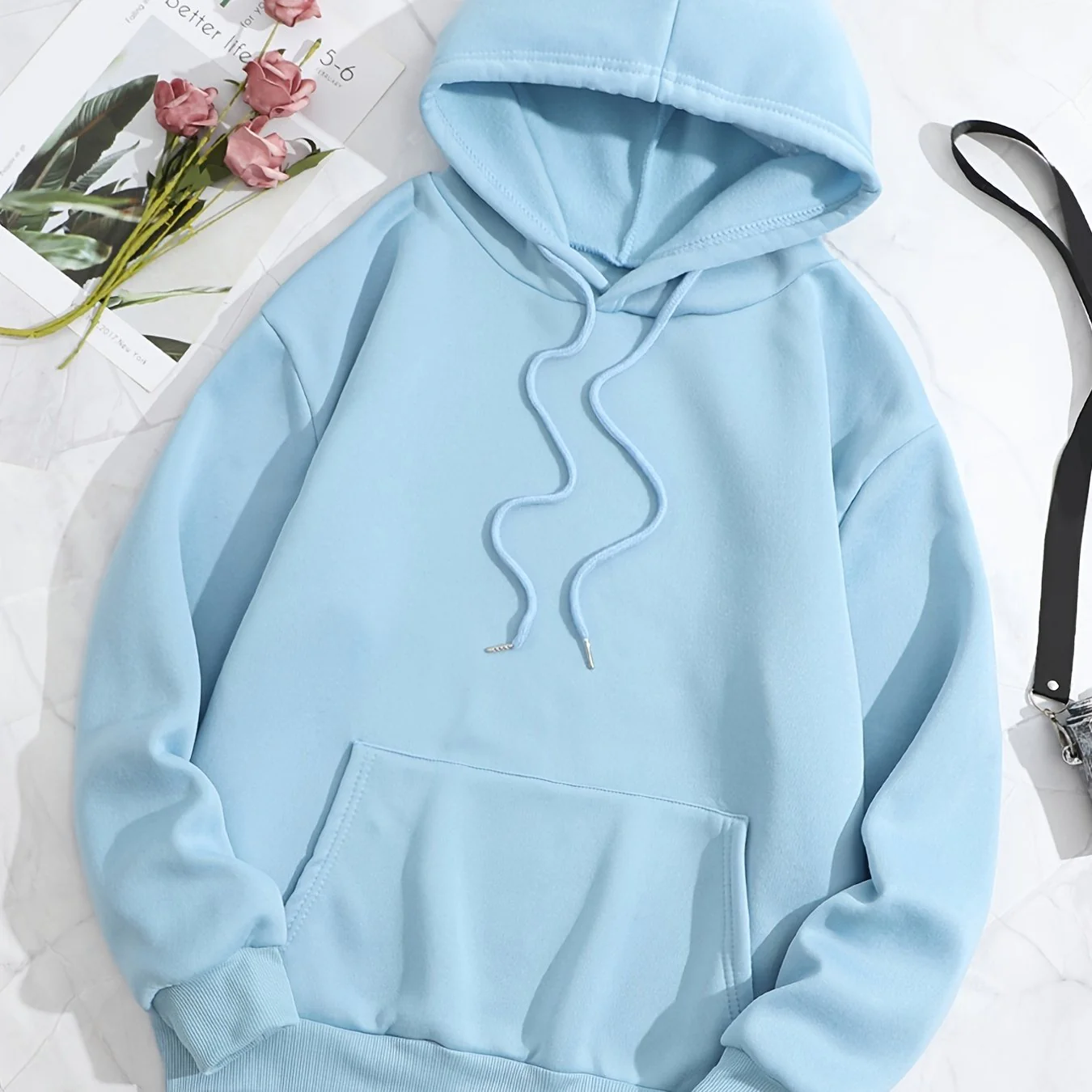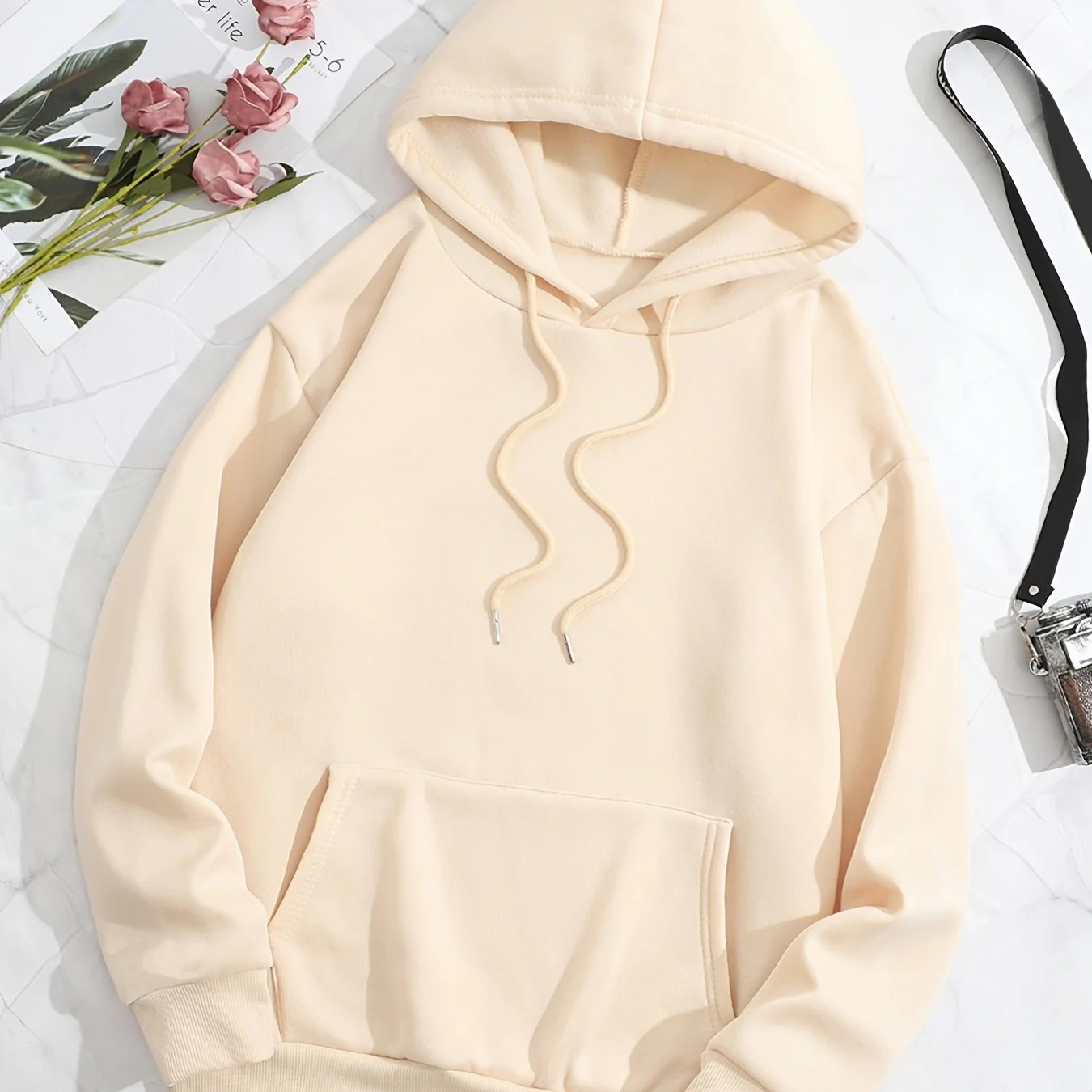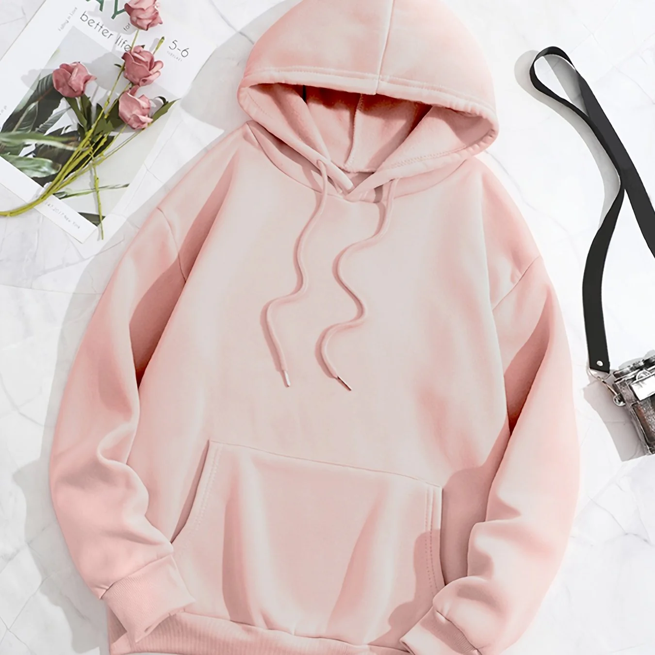 Simple Drawstring Loose Hoodie, Casual Hooded Fashion Long Sleeve Sweatshirt, Women's Clothing