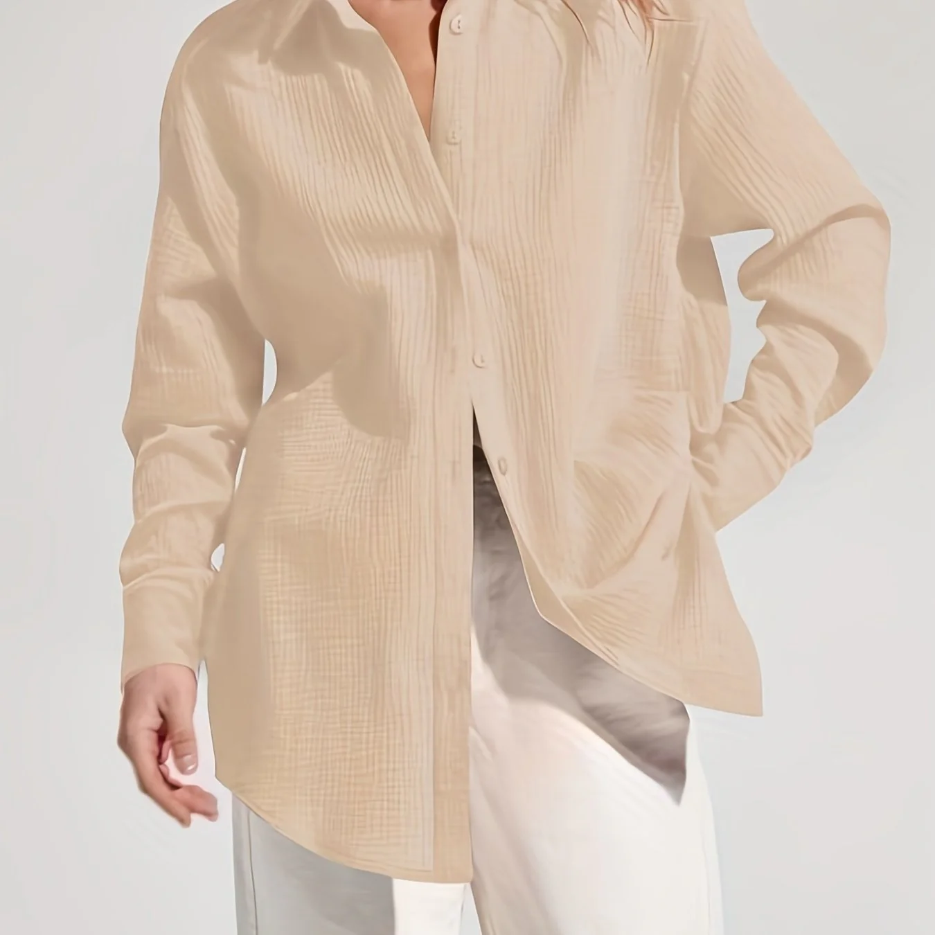 Solid Simple Shirt, Casual Button Front Long Sleeve Shirt, Women's Clothing