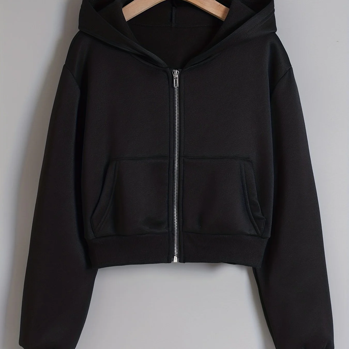 Long Sleeve Crop Hoodies, Zip Up Casual Sweatshirt Jacket, Women's Clothing