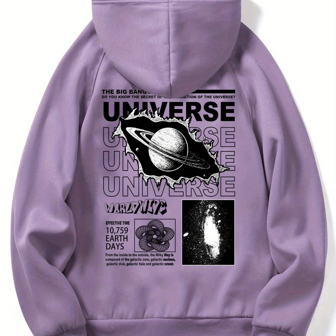 deanwangkt-1 Fleece Hoodies Street Casual Sports And Fashionable With Kangaroo Pocket Men's Long Sleeve Universe Print Sweatshirt,Suitable For Outdoor Sports,For Autumn And Winter, Fashionable And Versatile, Can Be Paired With Hip-hop Necklace