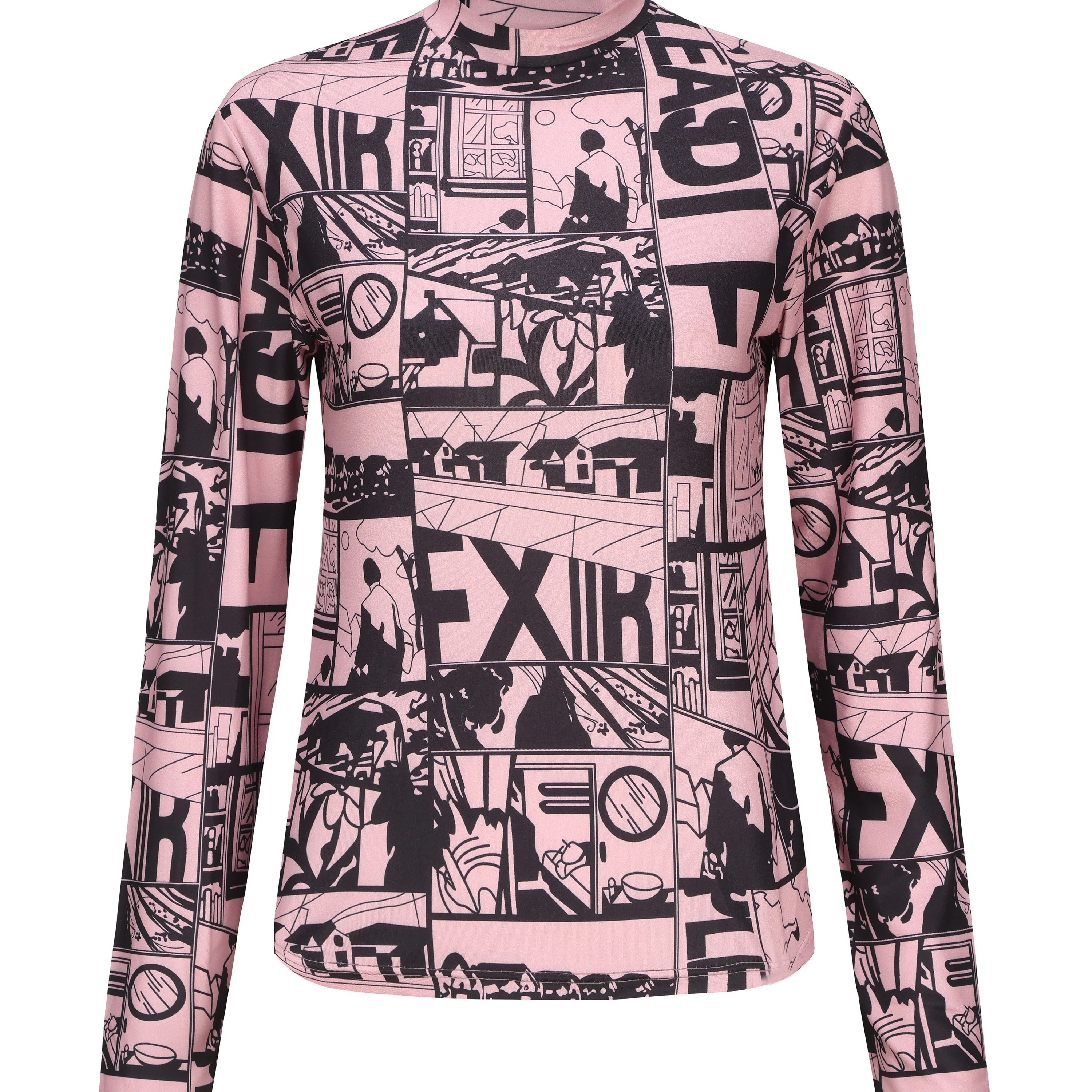 deanwangkt-1 Y2K Anime Print T-Shirt, Long Sleeve High Neck Casual Top, Women's Clothing