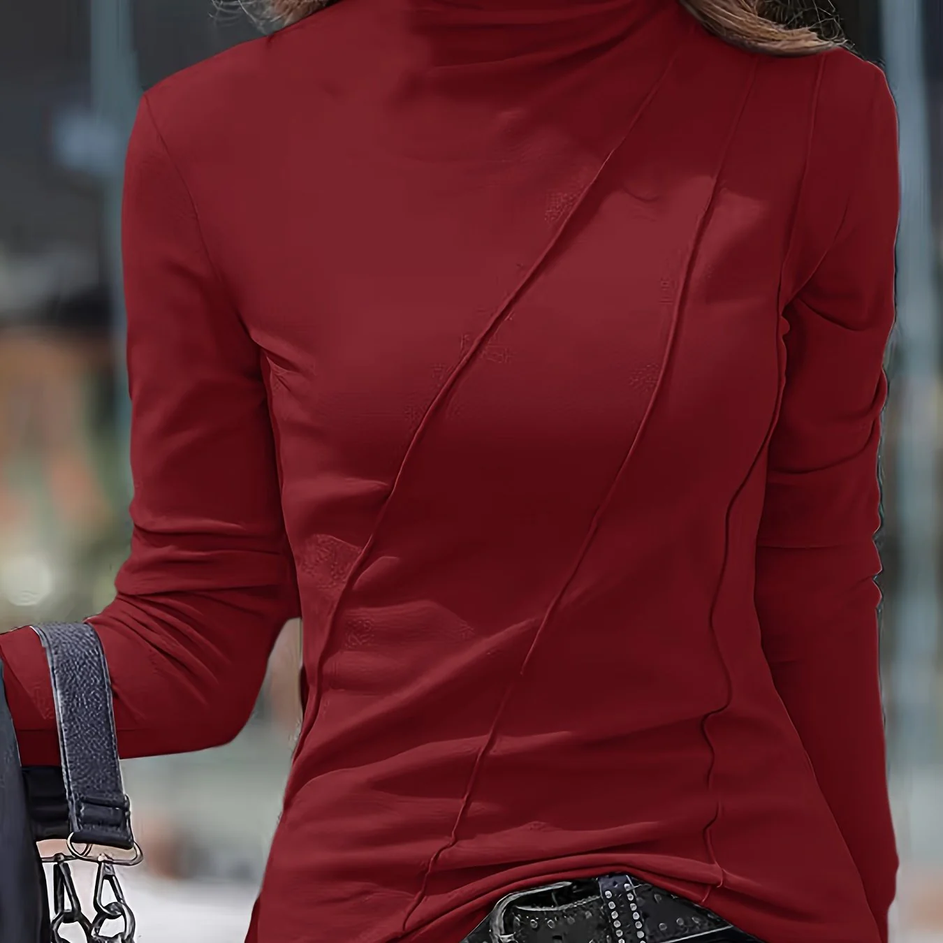 deanwangkt-1 Solid Slim Turtleneck T-Shirt, Casual Long Sleeve Top For Spring & Fall, Women's Clothing