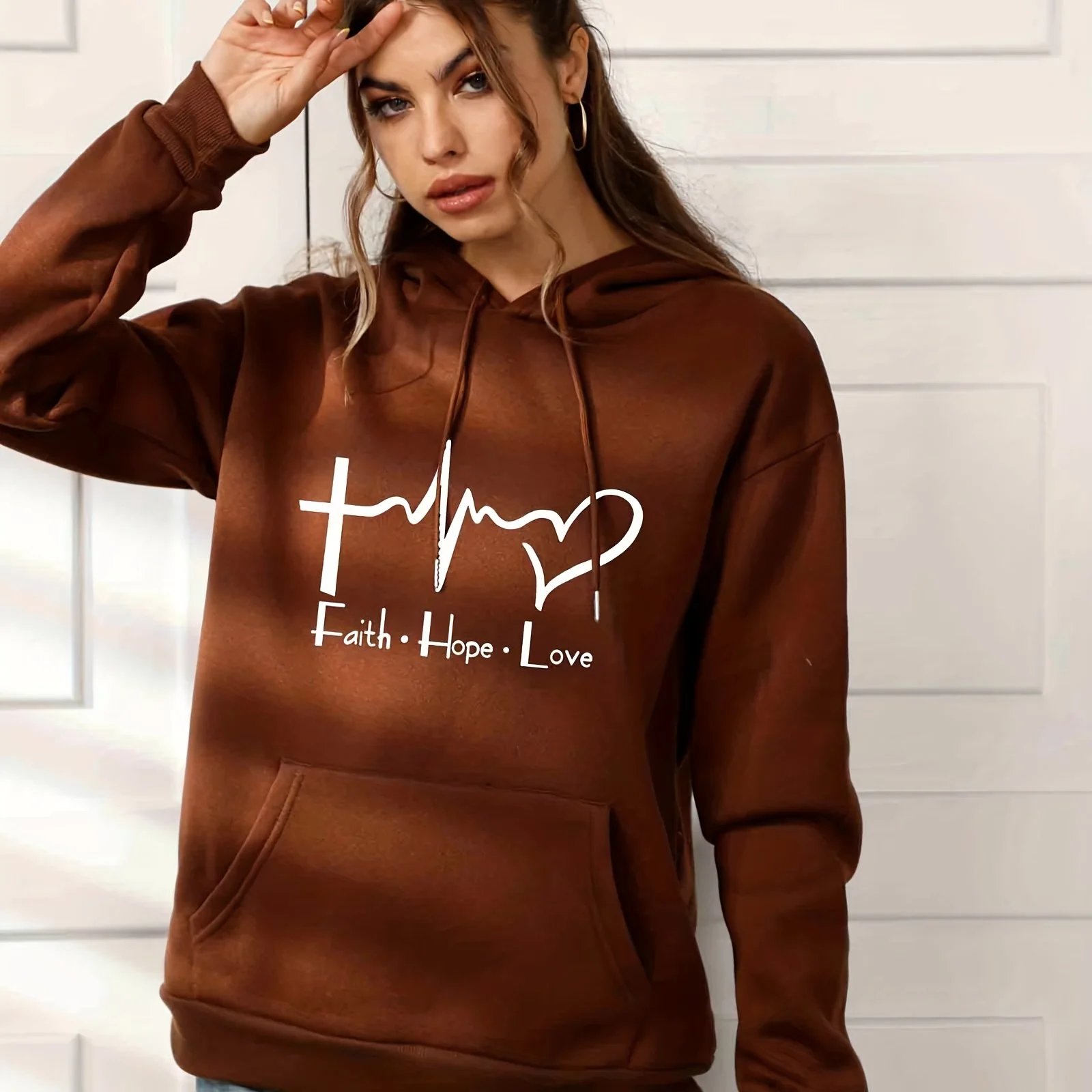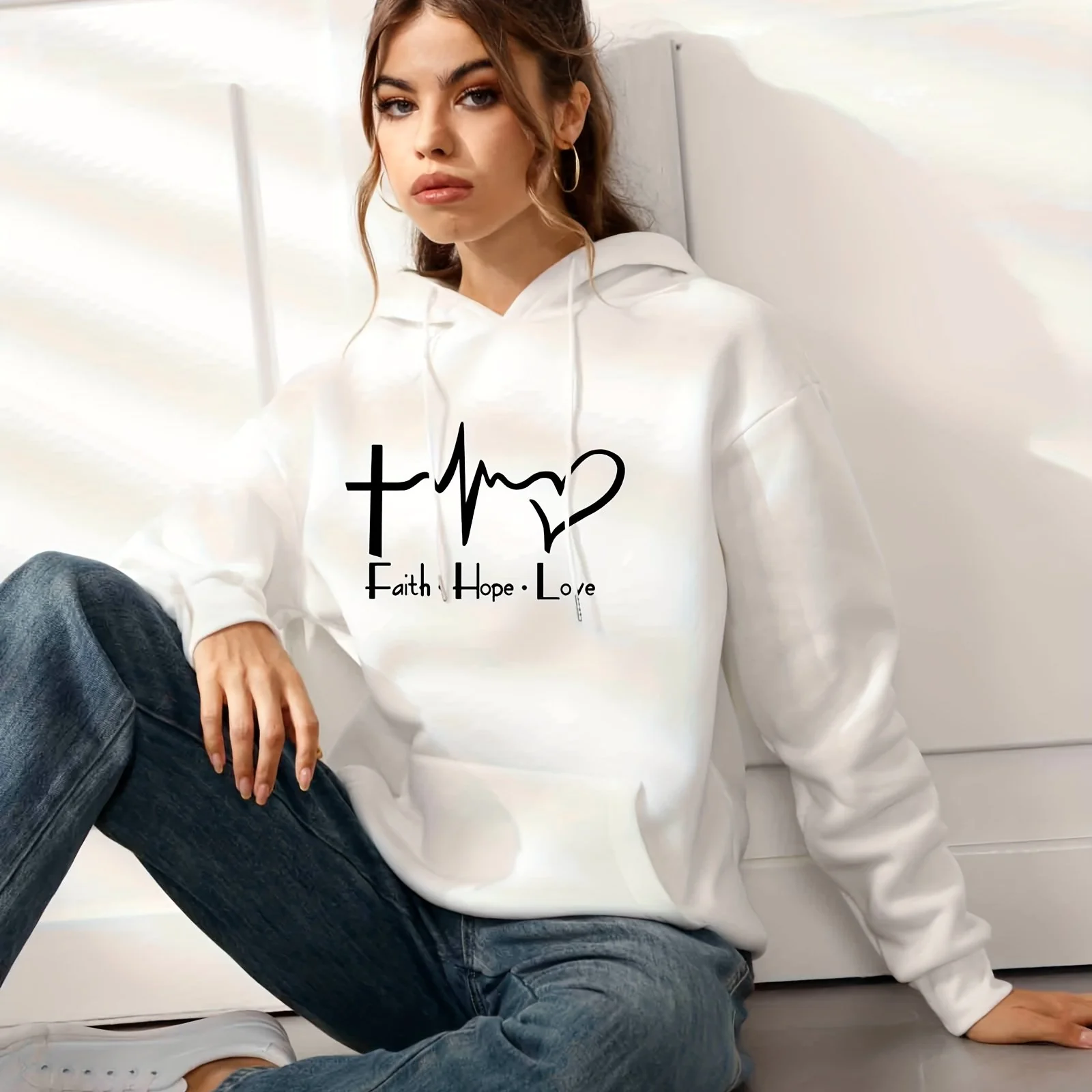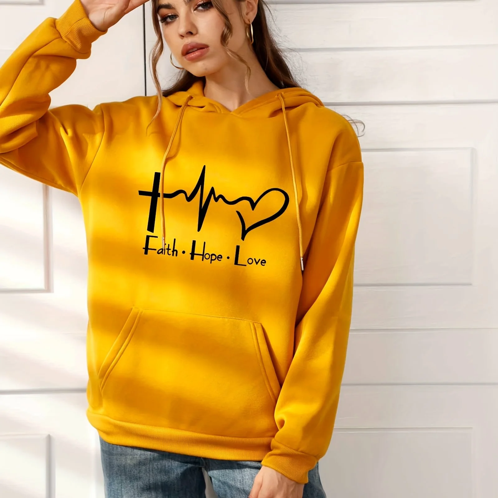 deanwangkt-1 Faith Hope And Love Letter Hooded Sweatshirt With Front Pocket, Long Sleeve Causal Sports Drawstring Hoodie, Women's Sporty Sweatshirts
