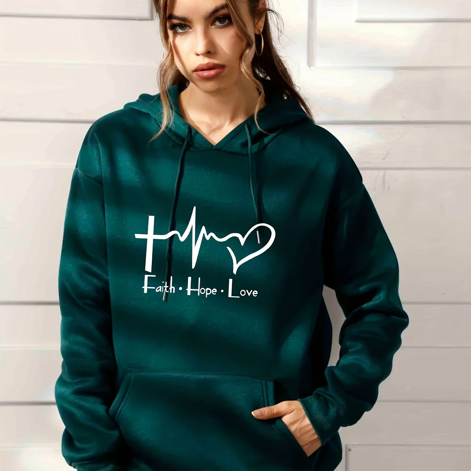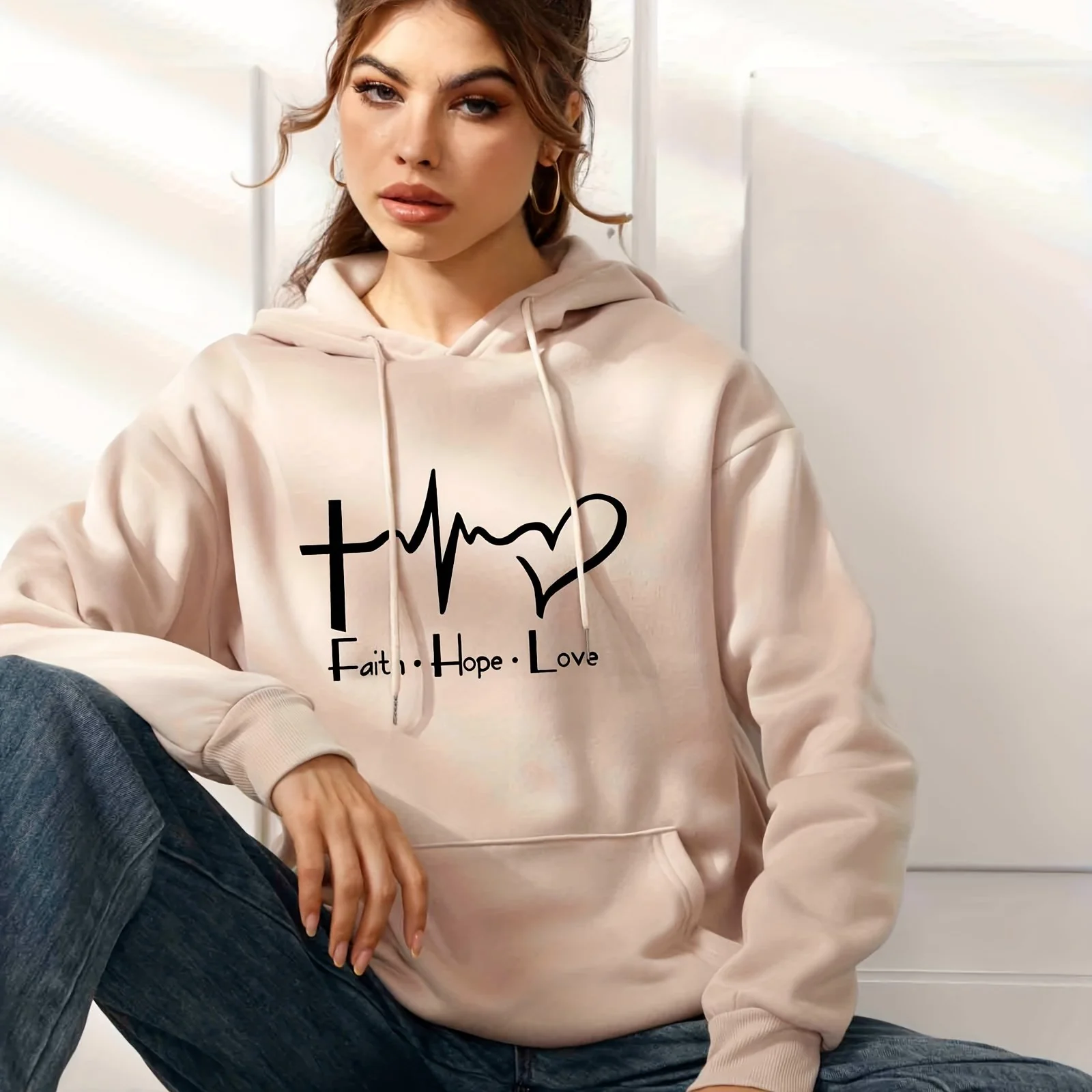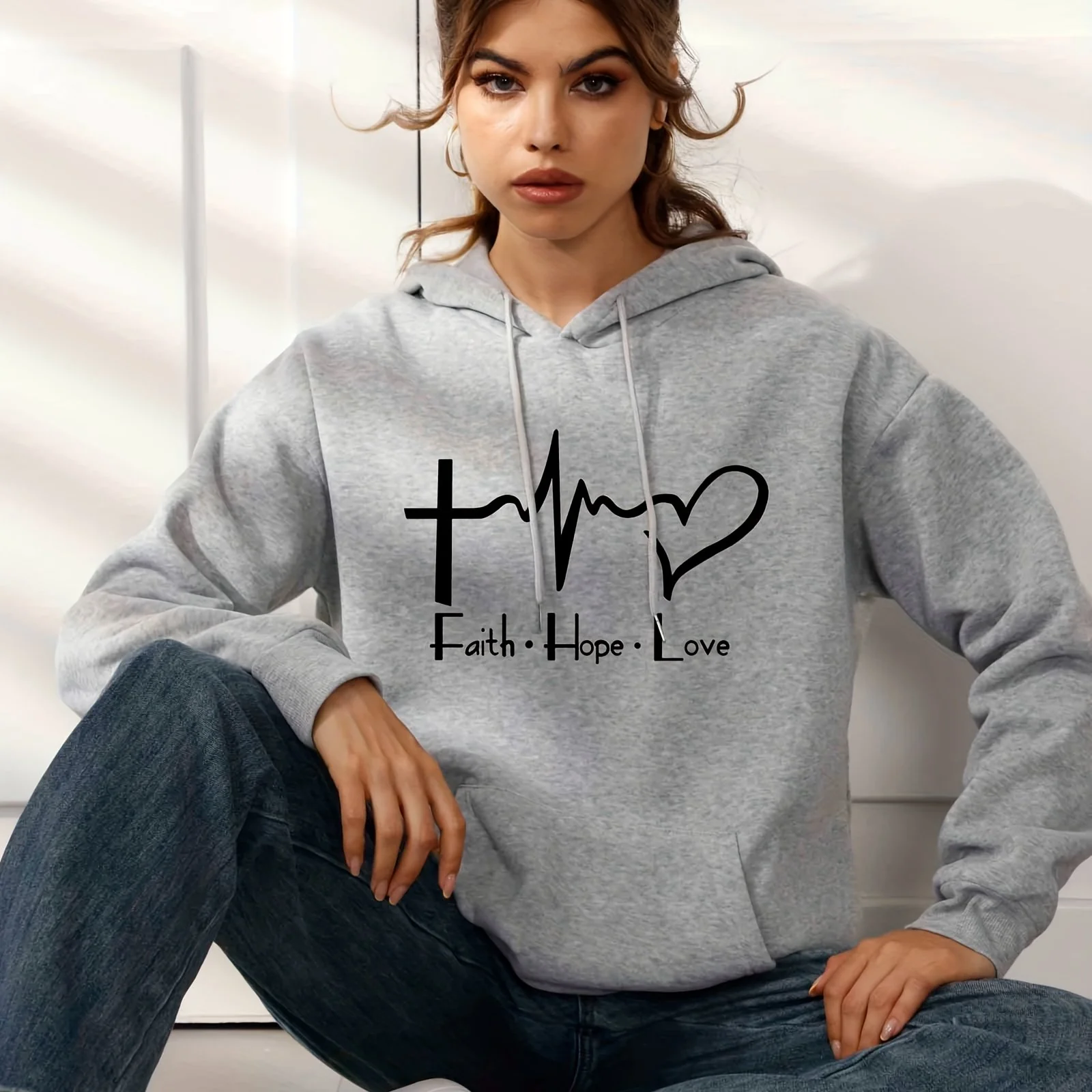 deanwangkt-1 Faith Hope And Love Letter Hooded Sweatshirt With Front Pocket, Long Sleeve Causal Sports Drawstring Hoodie, Women's Sporty Sweatshirts