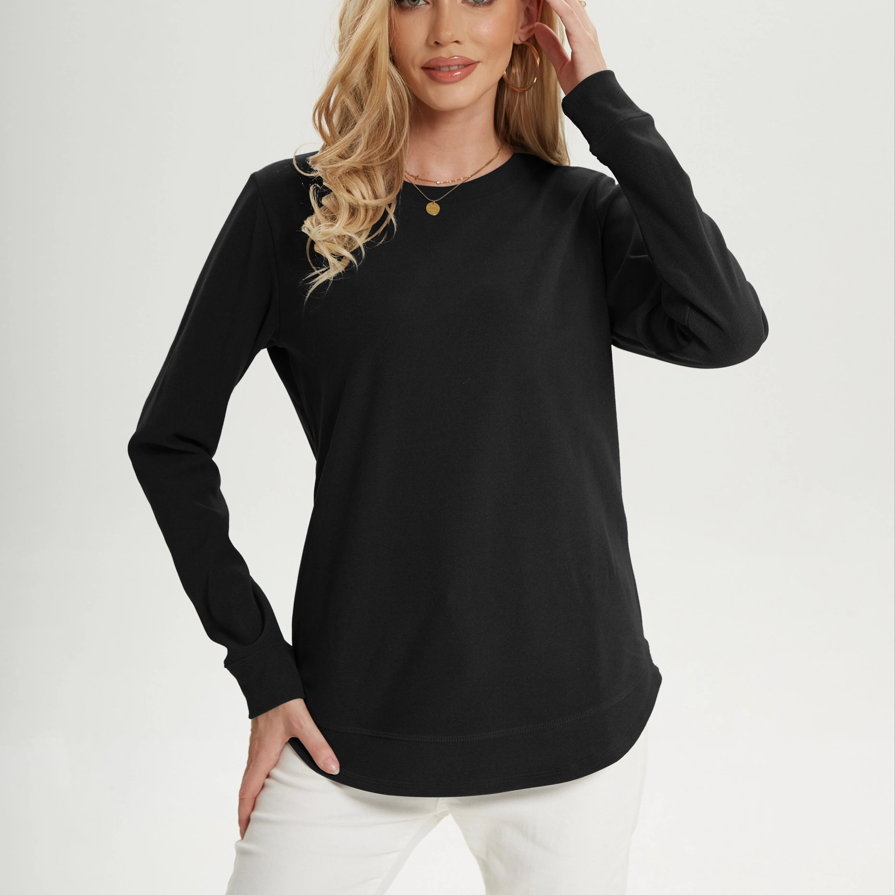 deanwangkt-1 Women's Crew Neck Sweatshirts, Long Sleeve Casual Sports Loose Pullover Shirts With Curved Hem, Women's Clothing