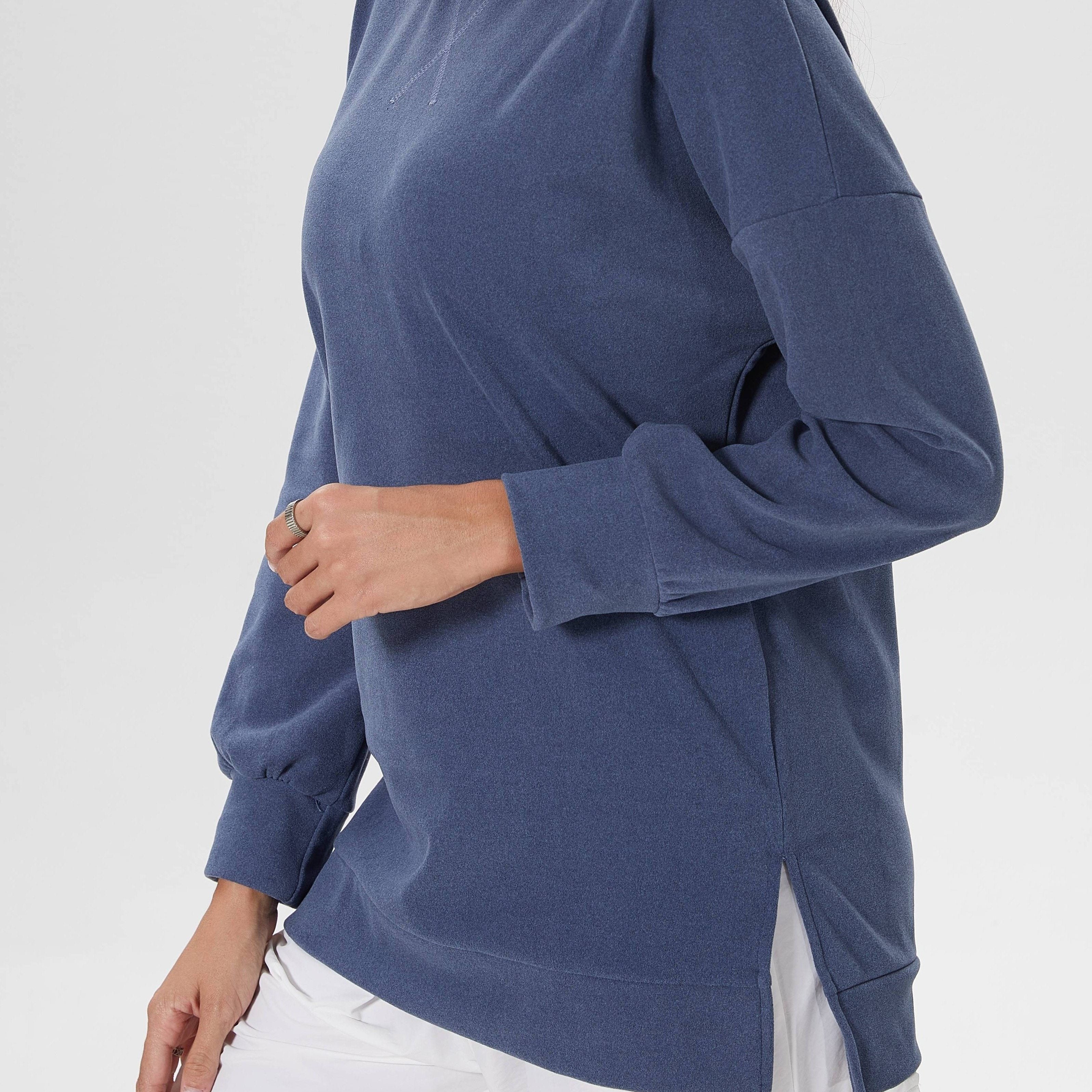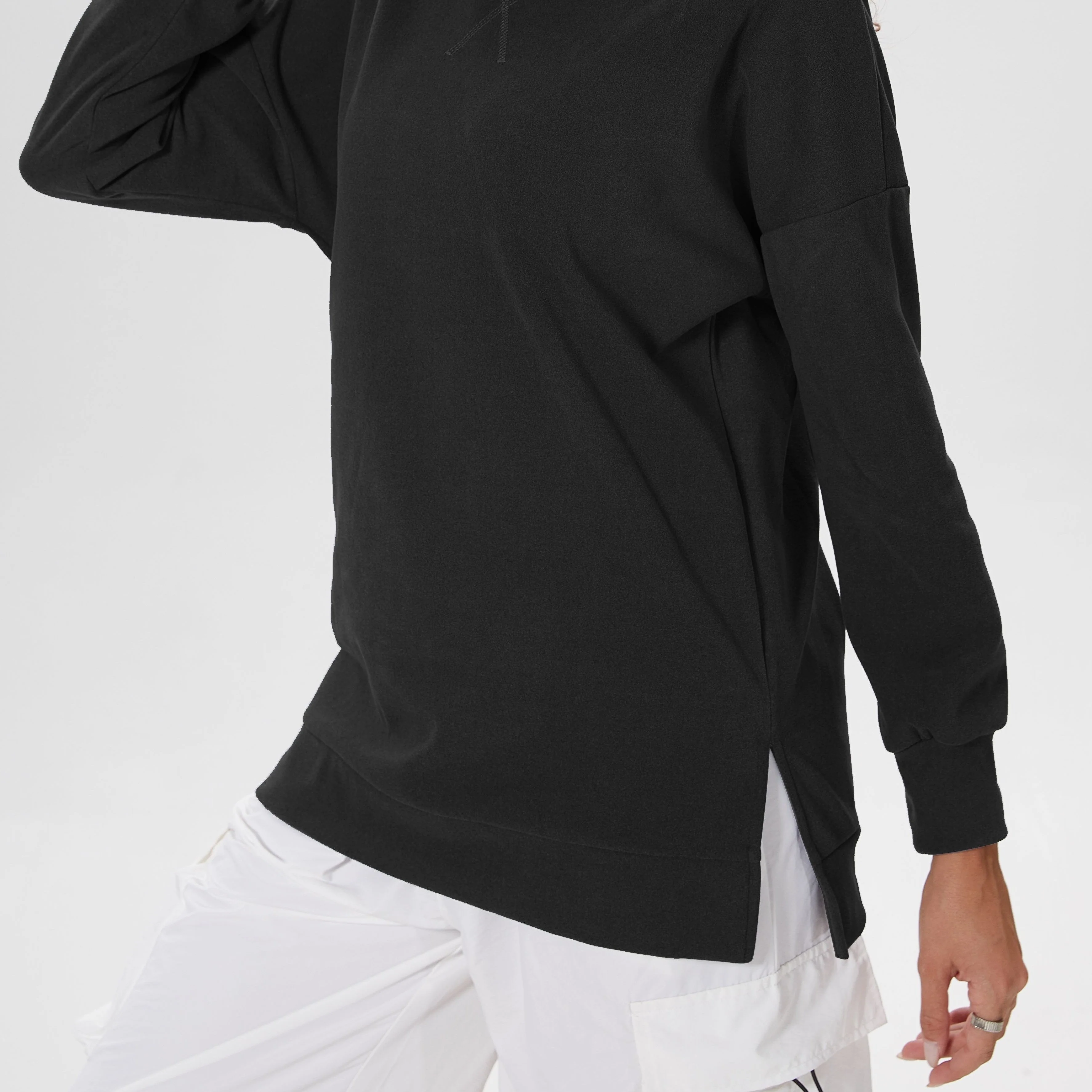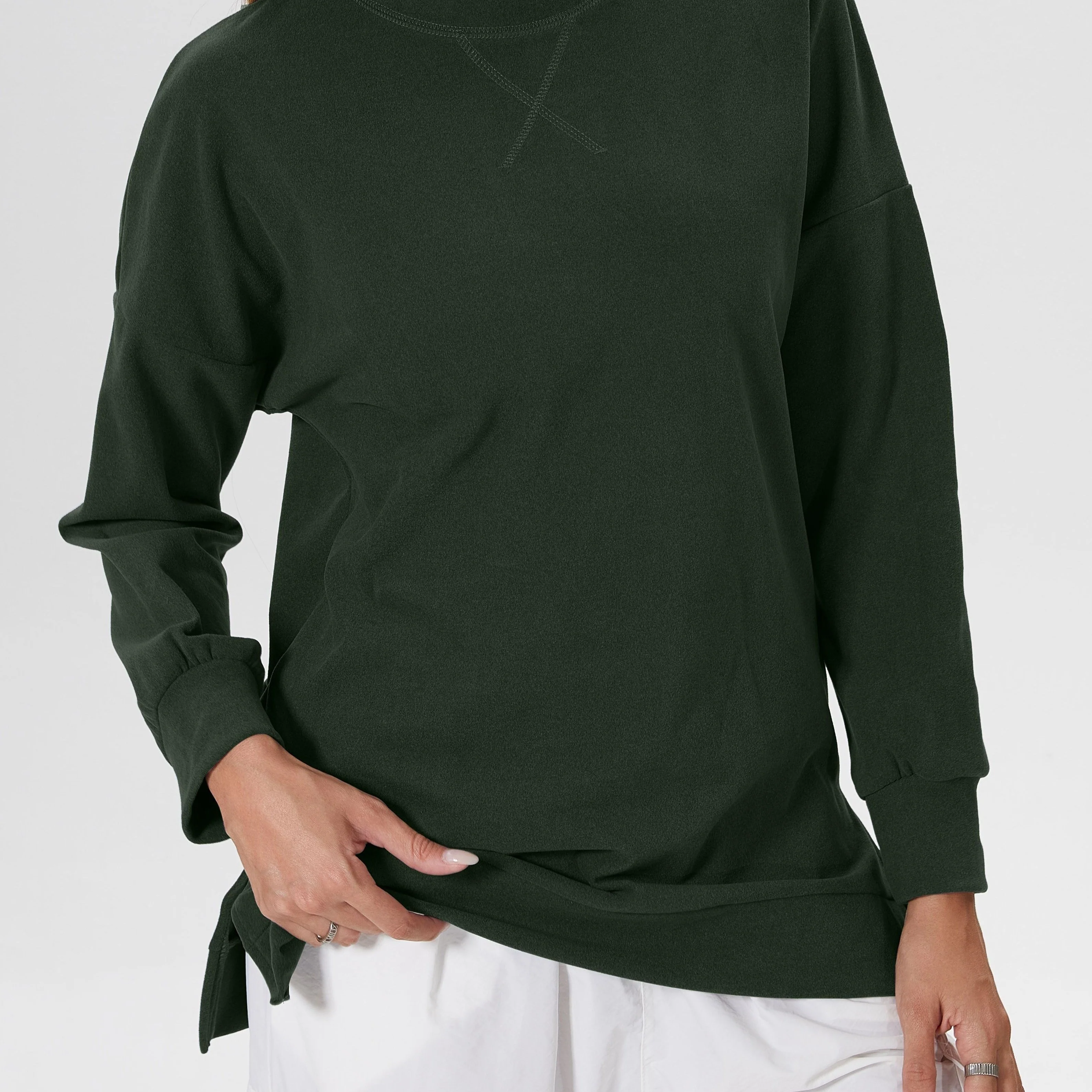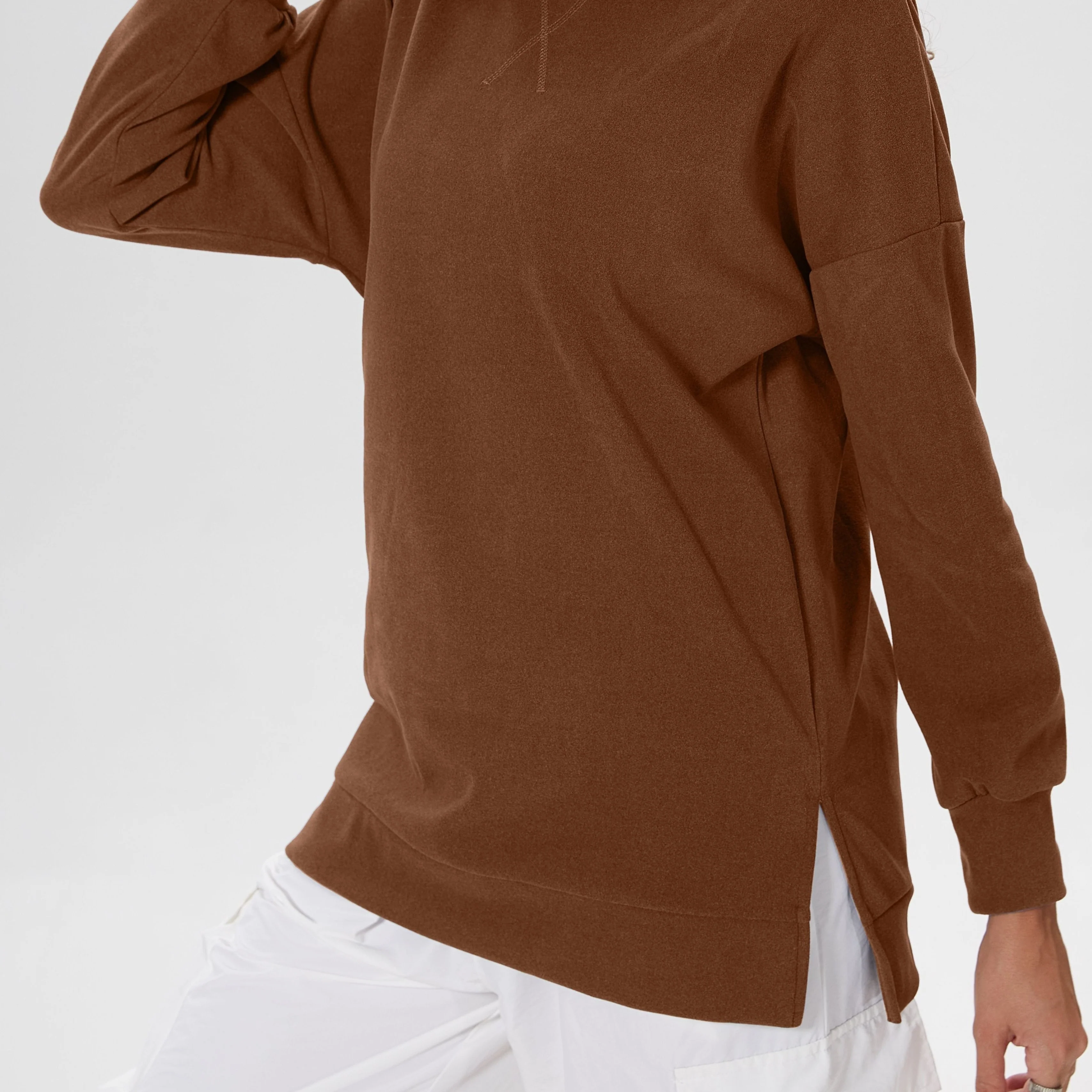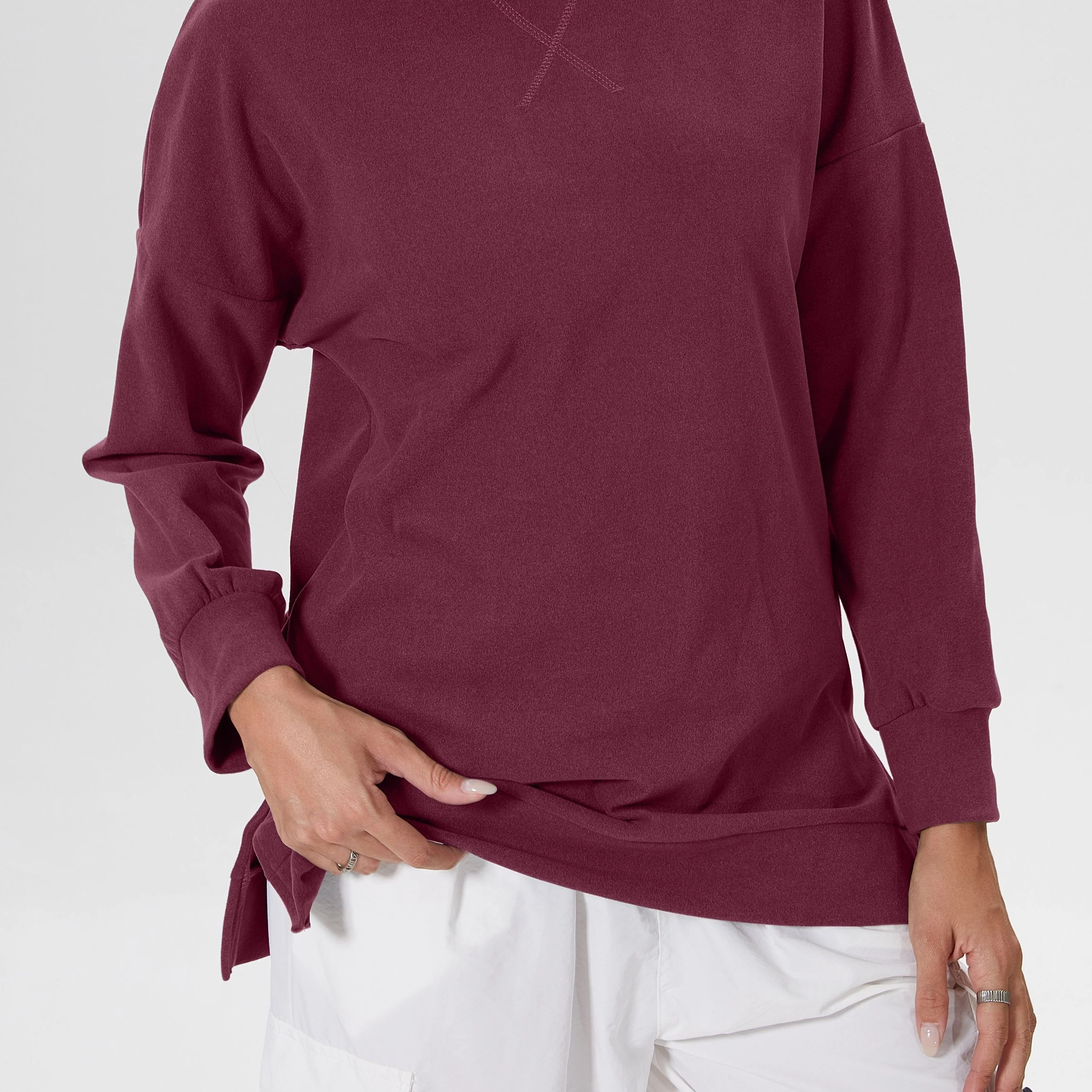 deanwangkt-1 Women's Solid Color Split Hem Fleece Sweatshirts, Round Neck Casual Sports Long Sleeve Pullover Tops, Women's Sporty Sweatshirts