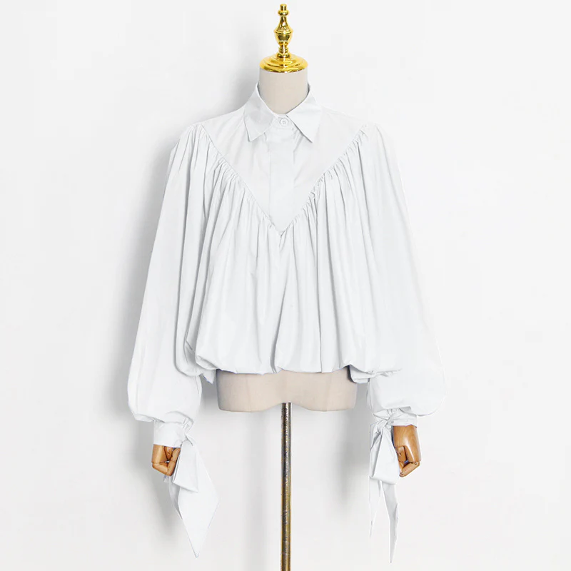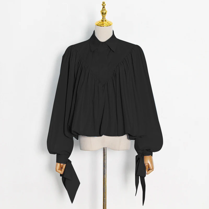 deanwangkt Loose Frill Trim Shirt For Women Lapel Long Sleeve Casual Lace Up Bow Blouse Female Fashion New Clothing Autumn