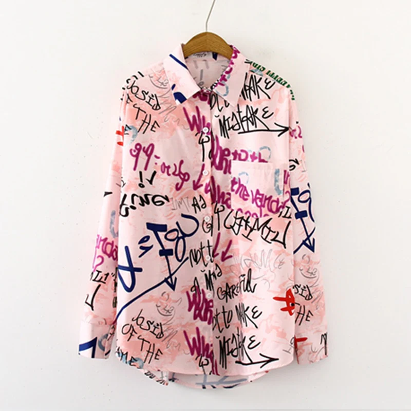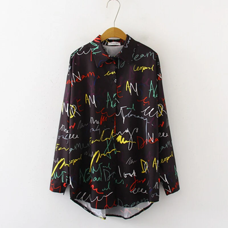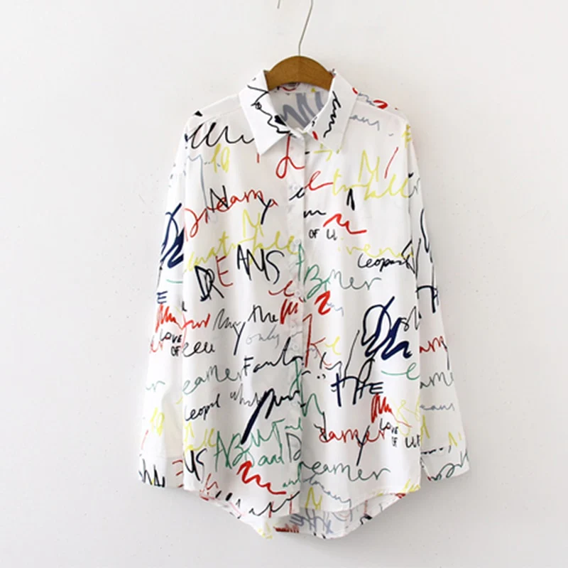 deanwangkt Fashion letter print ladies shirts Women's Blouses Spring Autumn Long Sleeve Shirts Tops Blusas Mujer