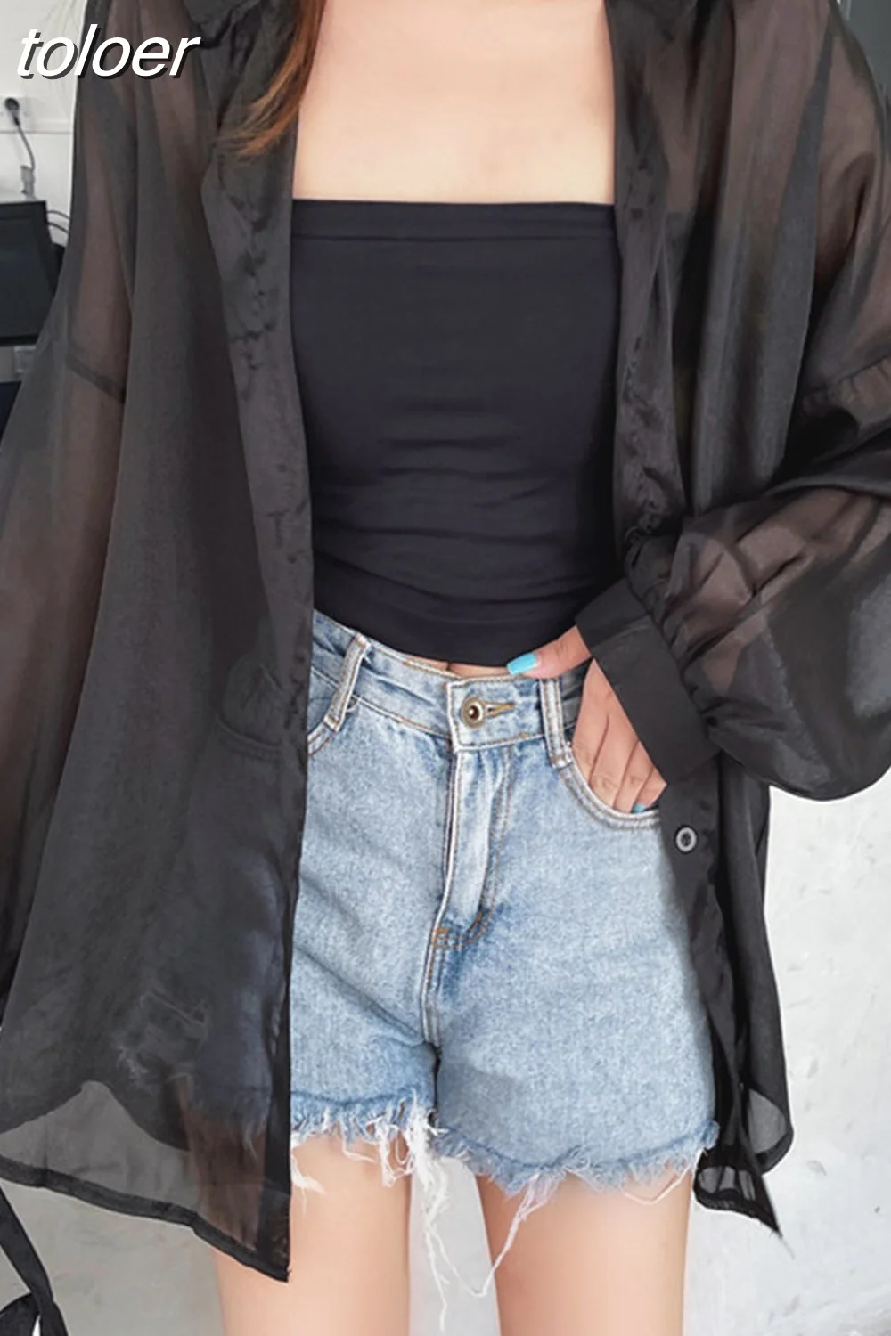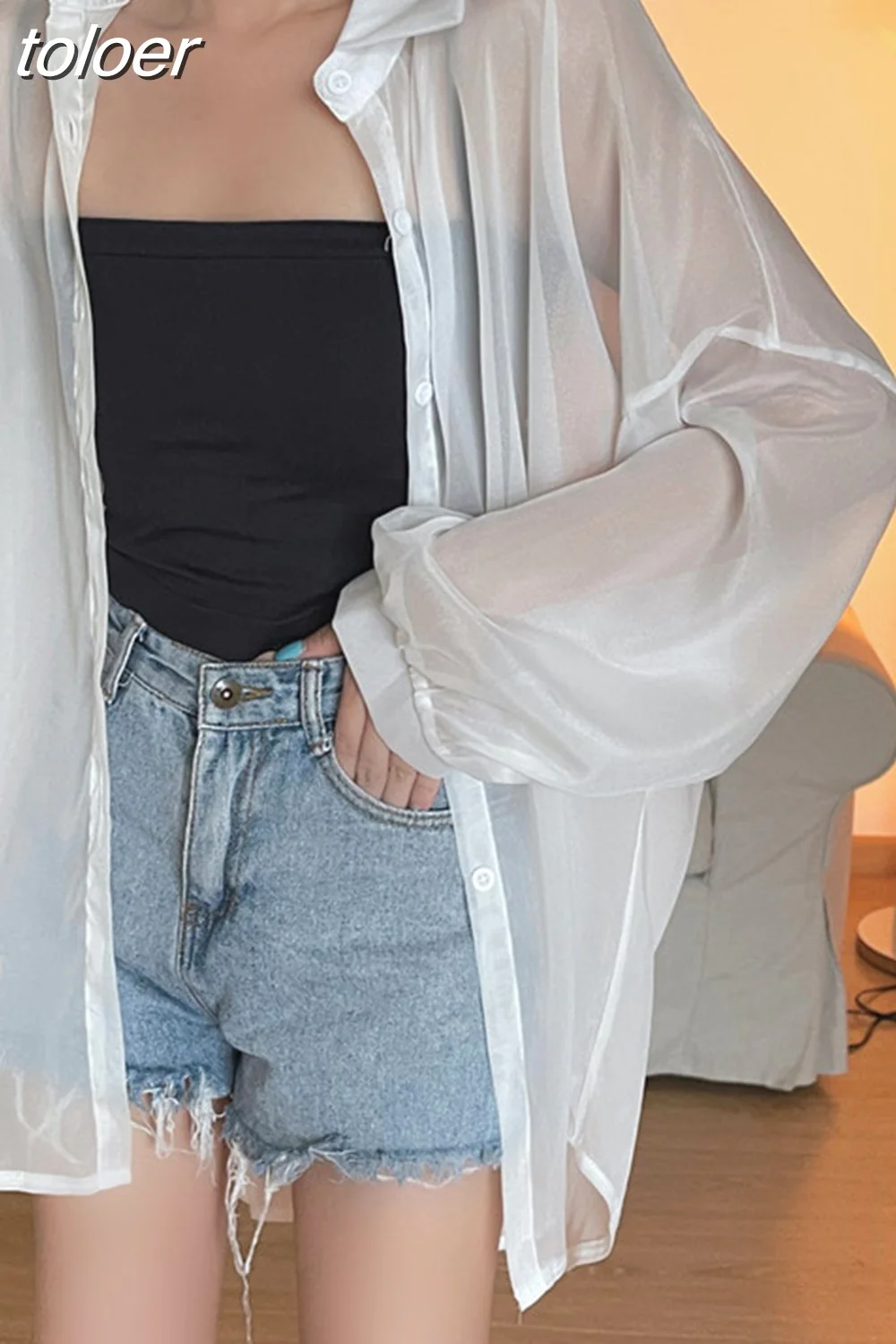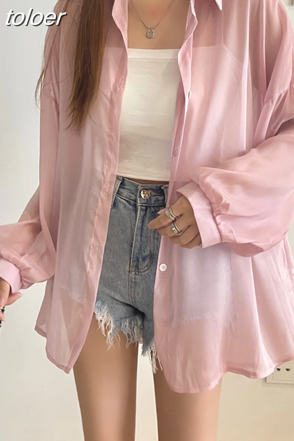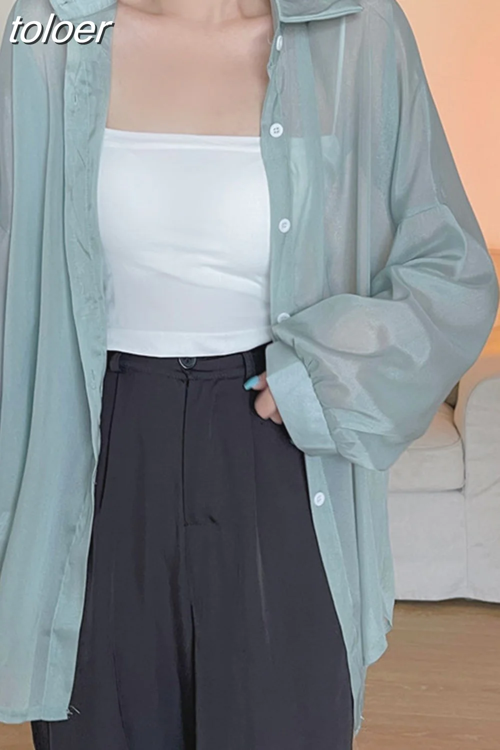 deanwangkt Fashion Women Holiday Beach Shirts See Through Chiffon Blouse Tops Sun Protection Clothes Long Sleeve Blusas New 22209