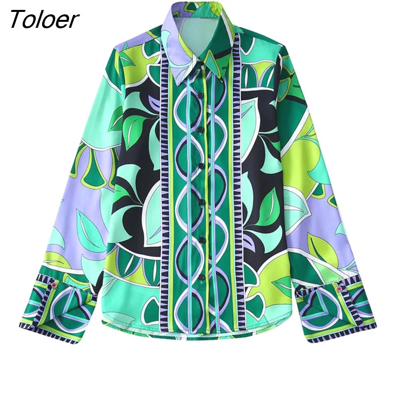 deanwangkt Patterned Shirts For Women Colorblock Loose Plus Size Lapel Long Sleeve Bohemian Style Blouses Female Clothing